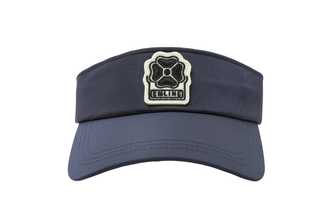 Logo visor in navy. 3D embroidery logo at front in black and cream. Strap logo...