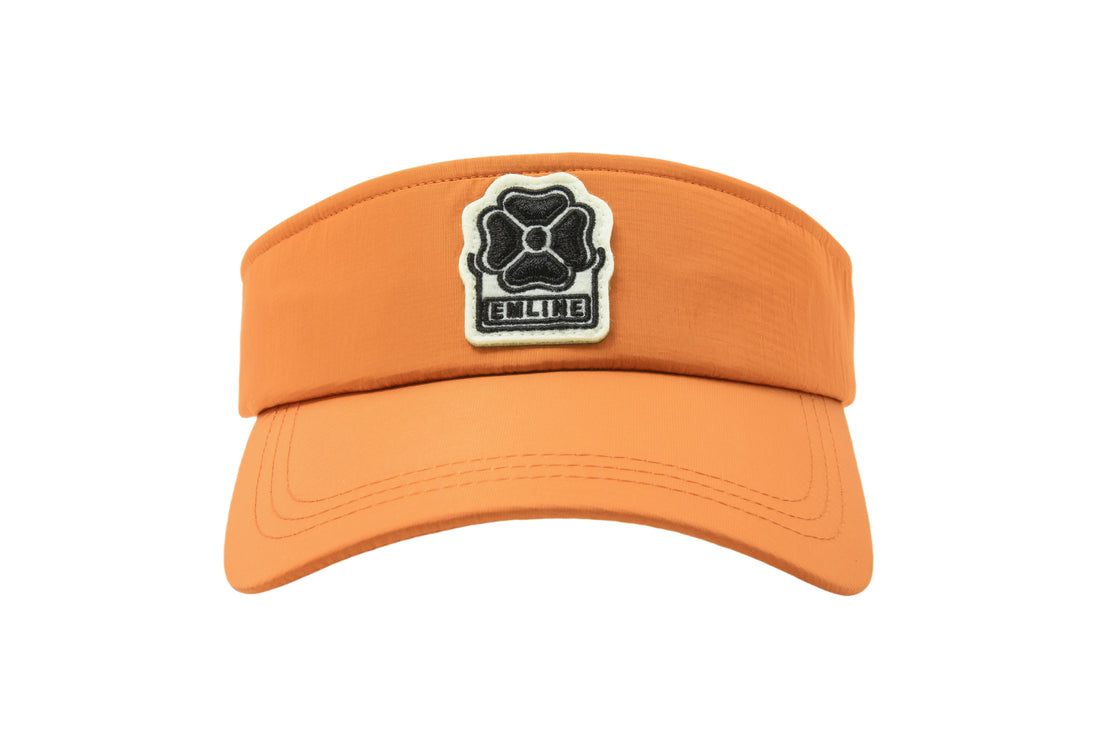 Logo visor in orange. 3D embroidery logo at front in black and cream. Strap logo...