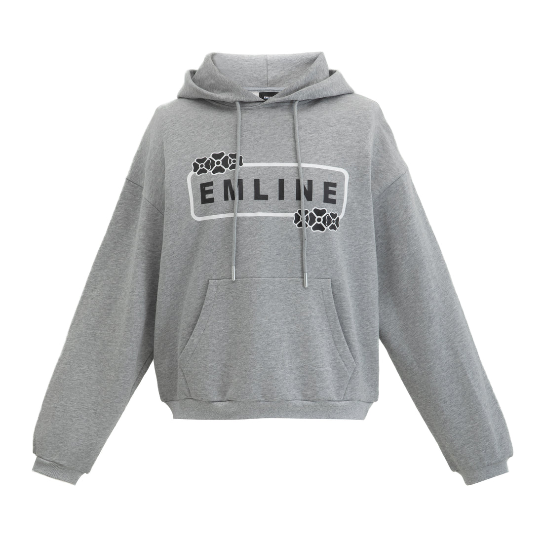 100% French Terry hoodie in gray. Screen print at front and back in black and...