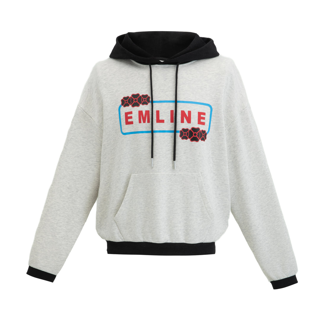 100% French Terry hoodie in light gray. Screen print at front and back in black,...