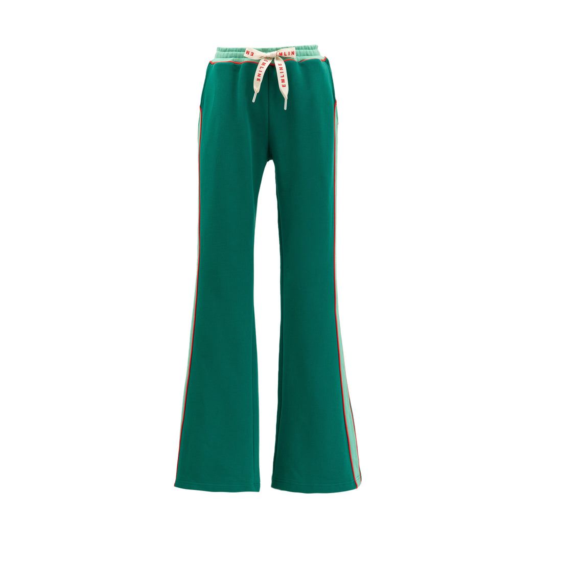 100% French Terry cotton sweatpants in forest green. Embroidery at left leg in cream. Piping...