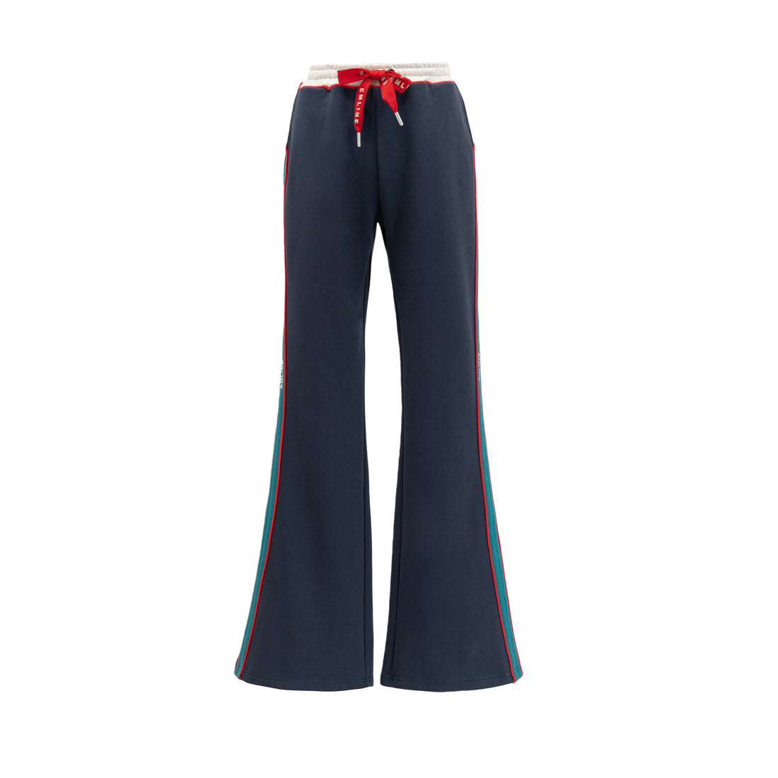 100% French Terry cotton sweatpants in navy. Embroidery at left leg in cream. Piping at...