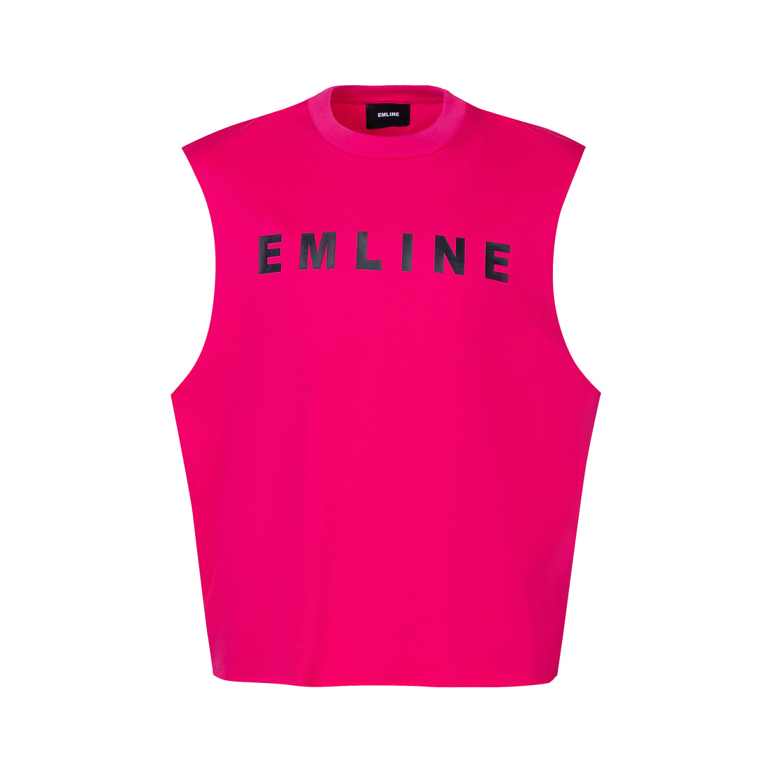 100% Jersey cotton in pink. Sleeveless. Raw edge, no hem at bottom and sleeve....