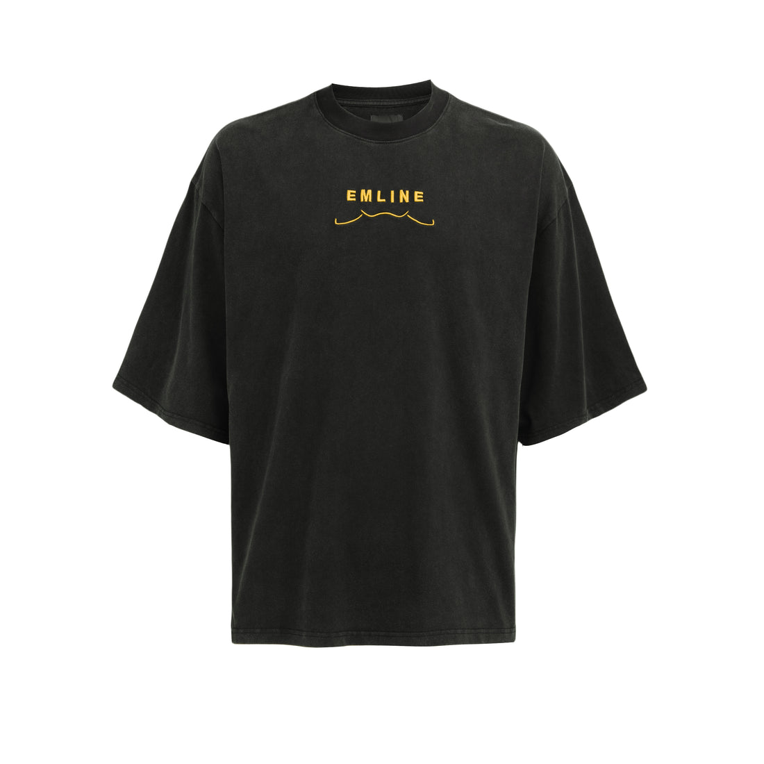 Jersey cotton in vintage black. Embroidery logo at front and back in yellow. Extended...