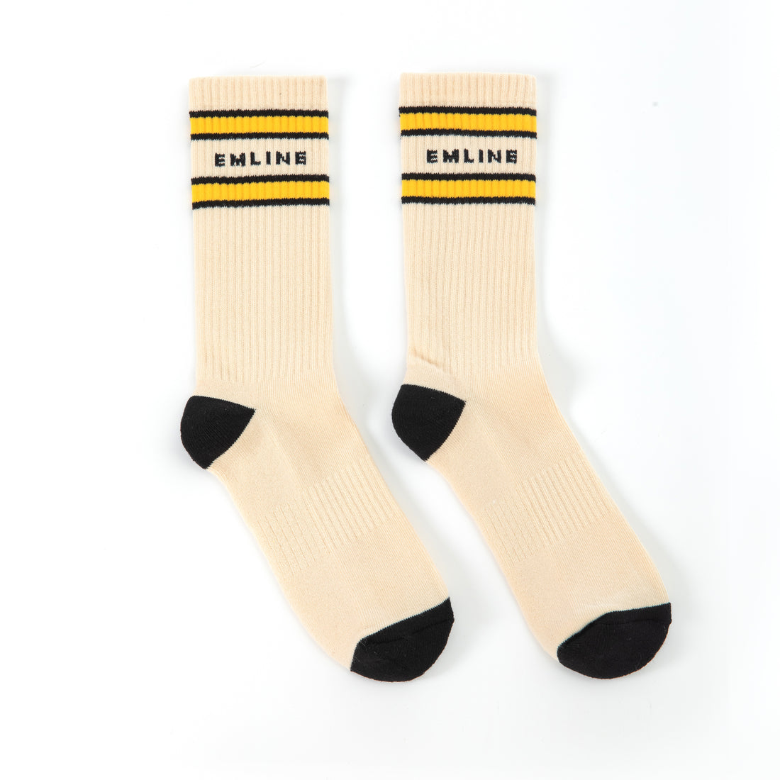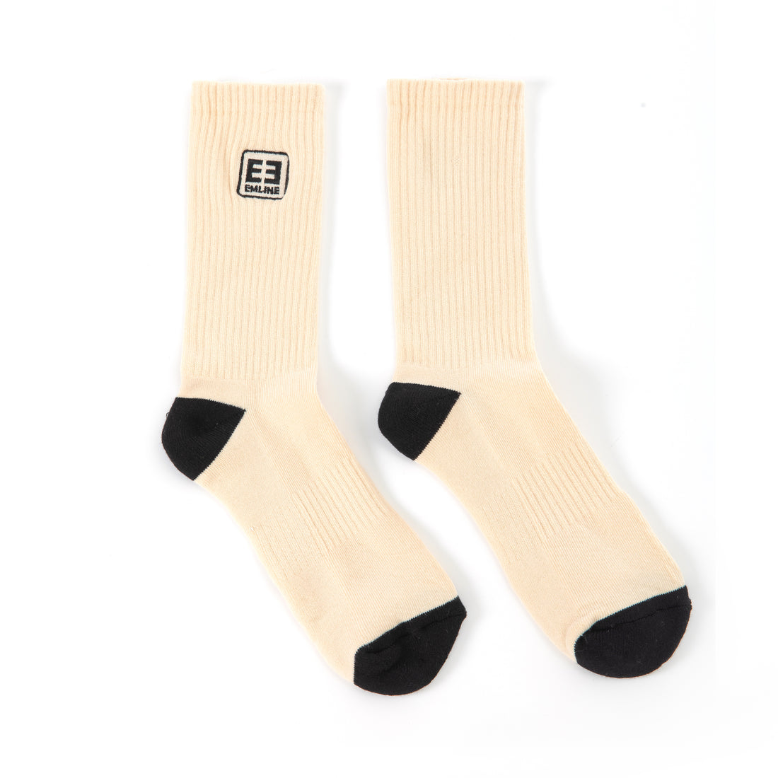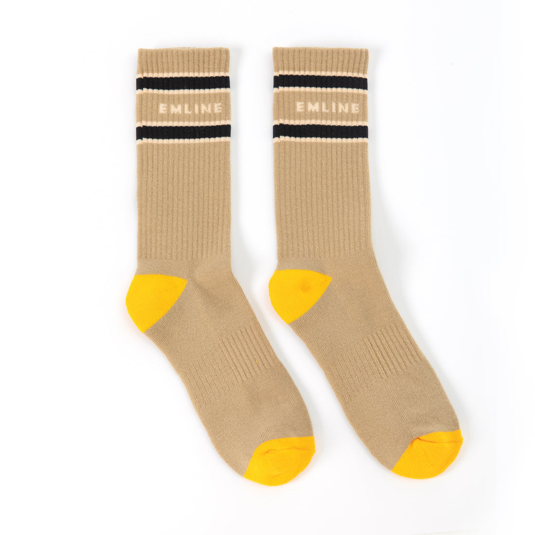 Sports cotton tube socks in light brown. Logo patch in black and cream at tube....
