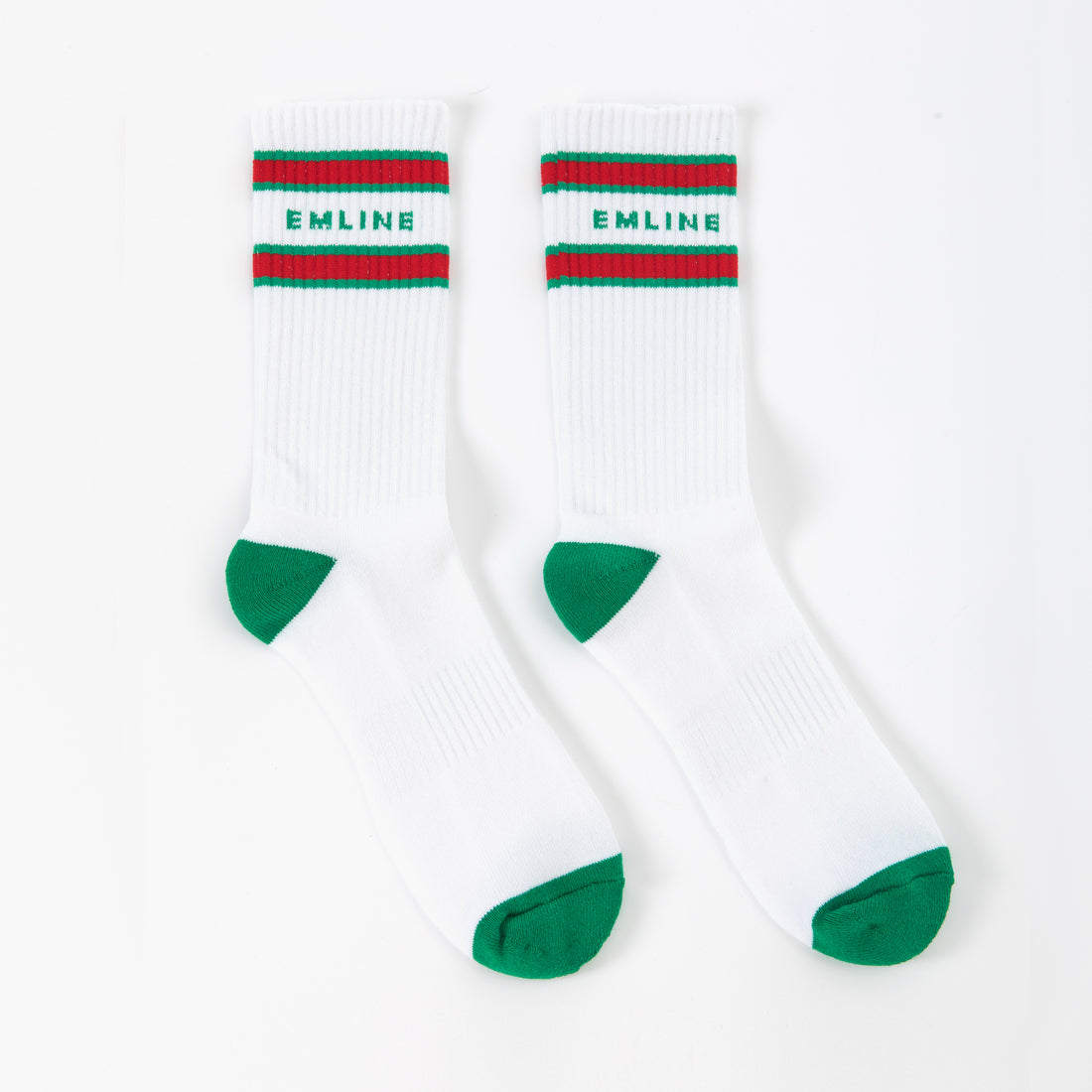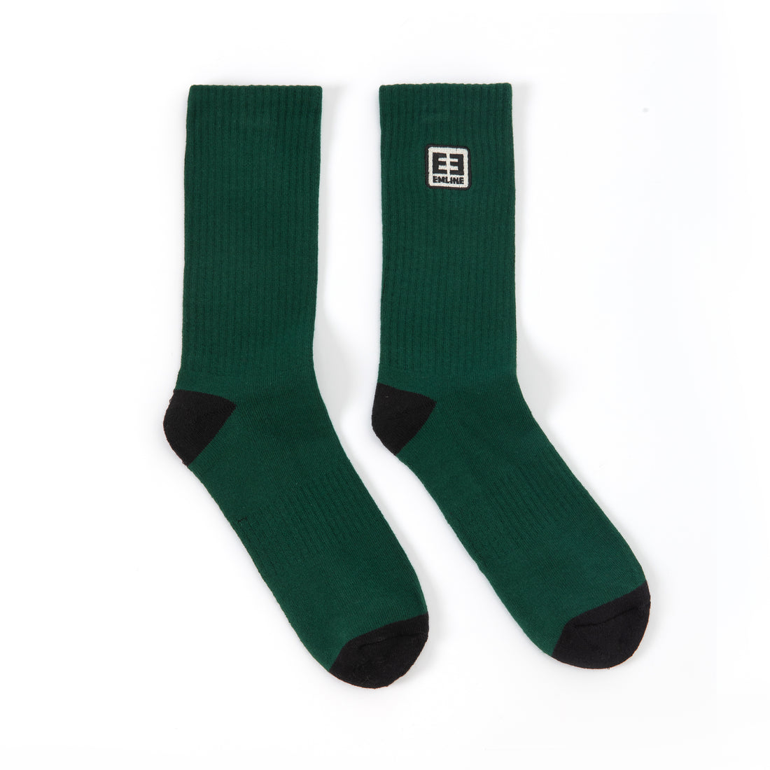 Sports cotton tube socks in forest green. Logo patch in black and cream at tube....