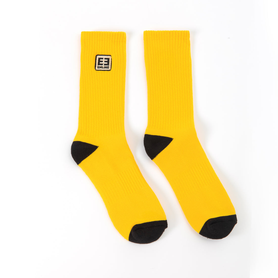 Sports cotton tube socks in slime green. Logo patch in black and cream at tube....