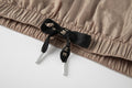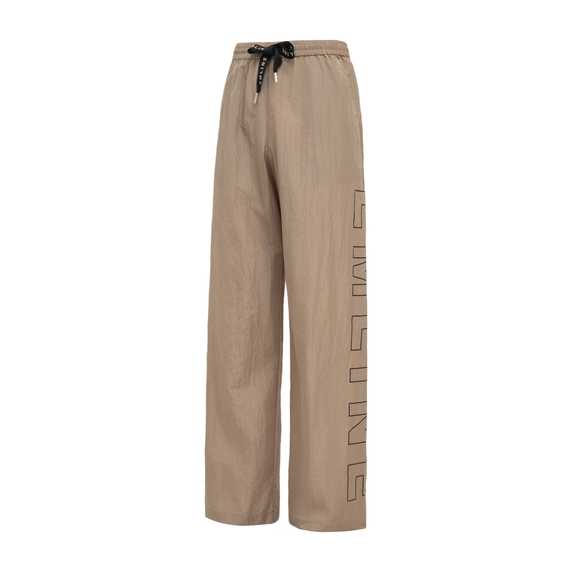 - Drawstring at waist in black and khaki with logo tips.
