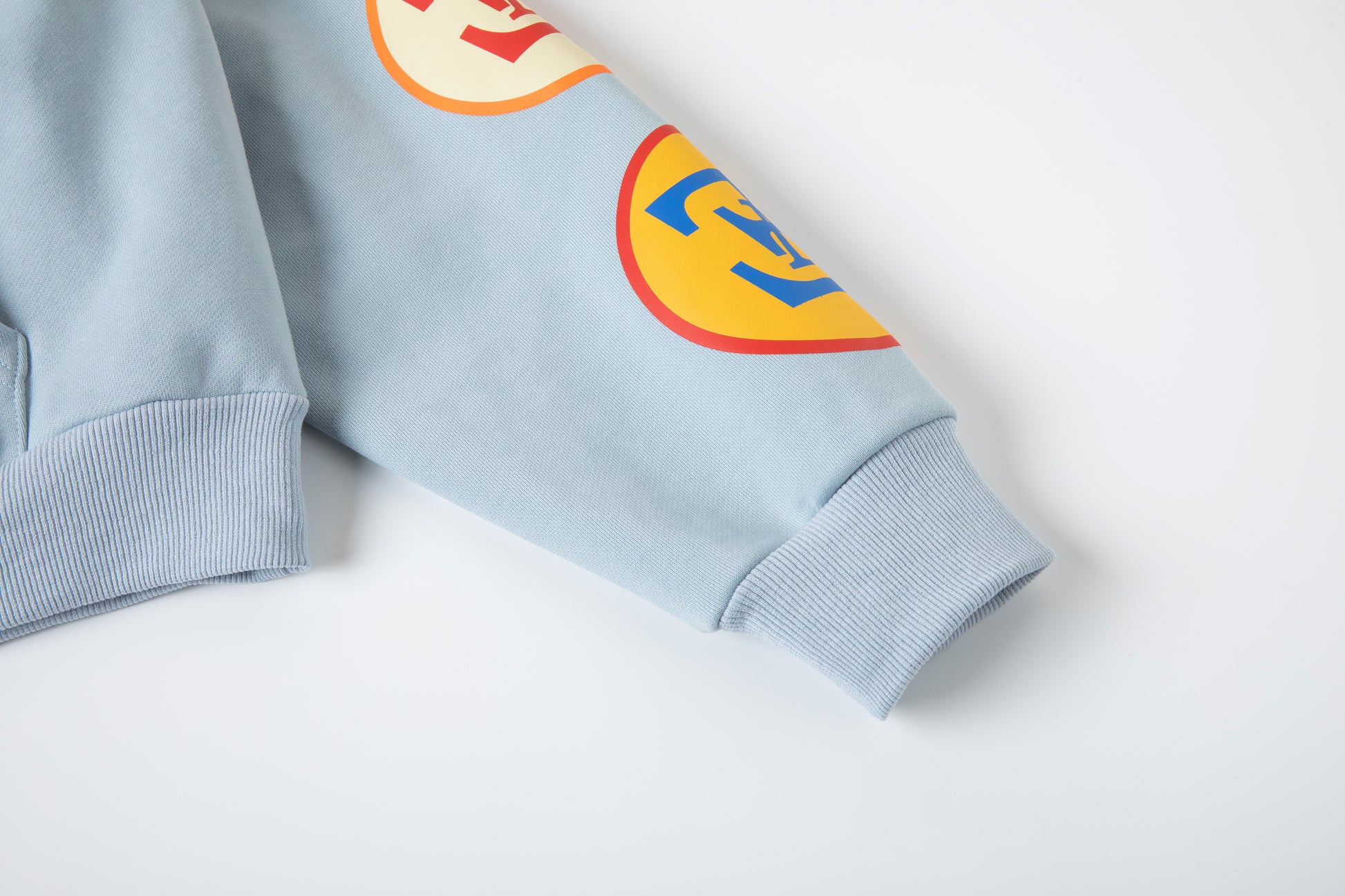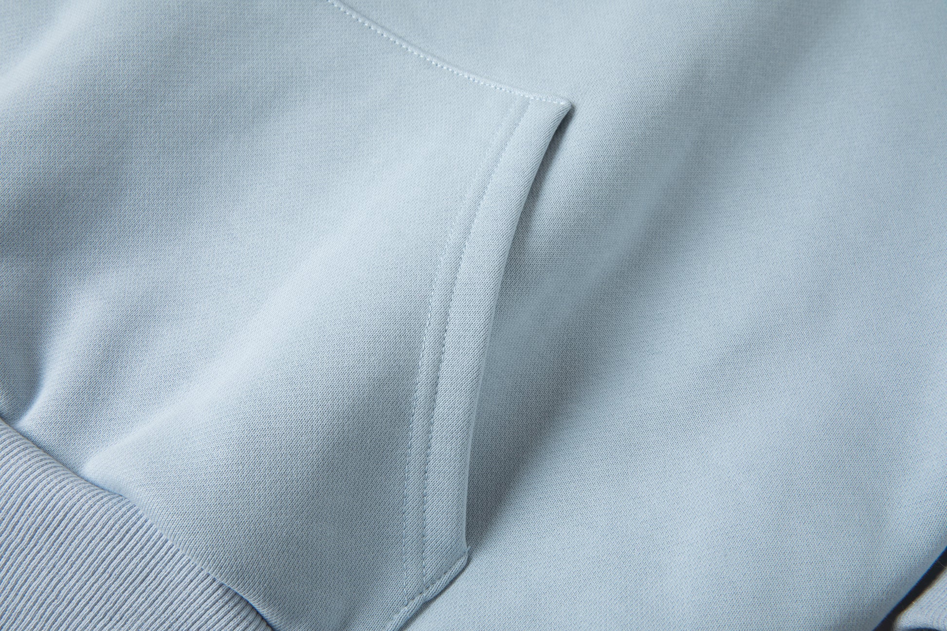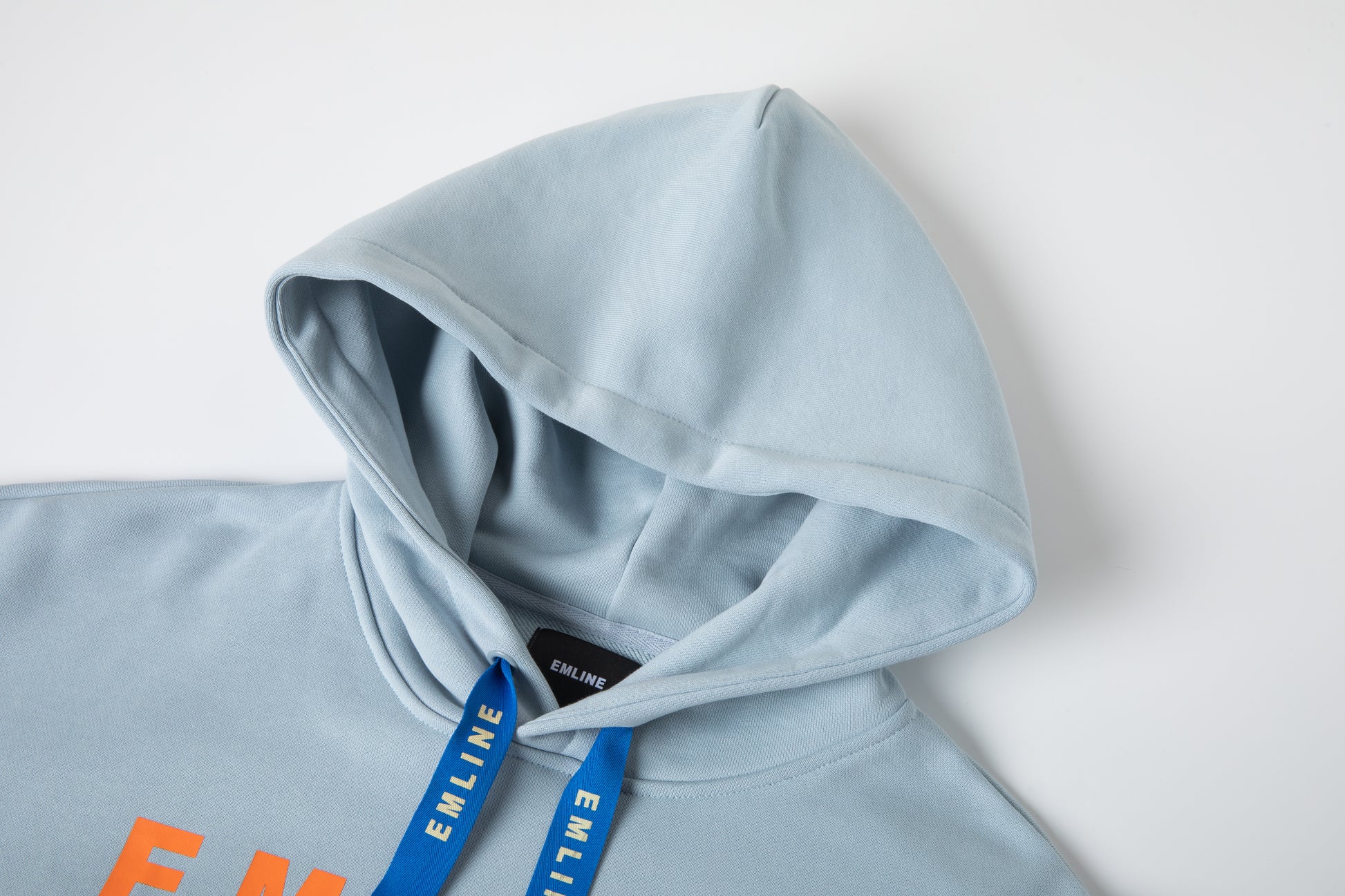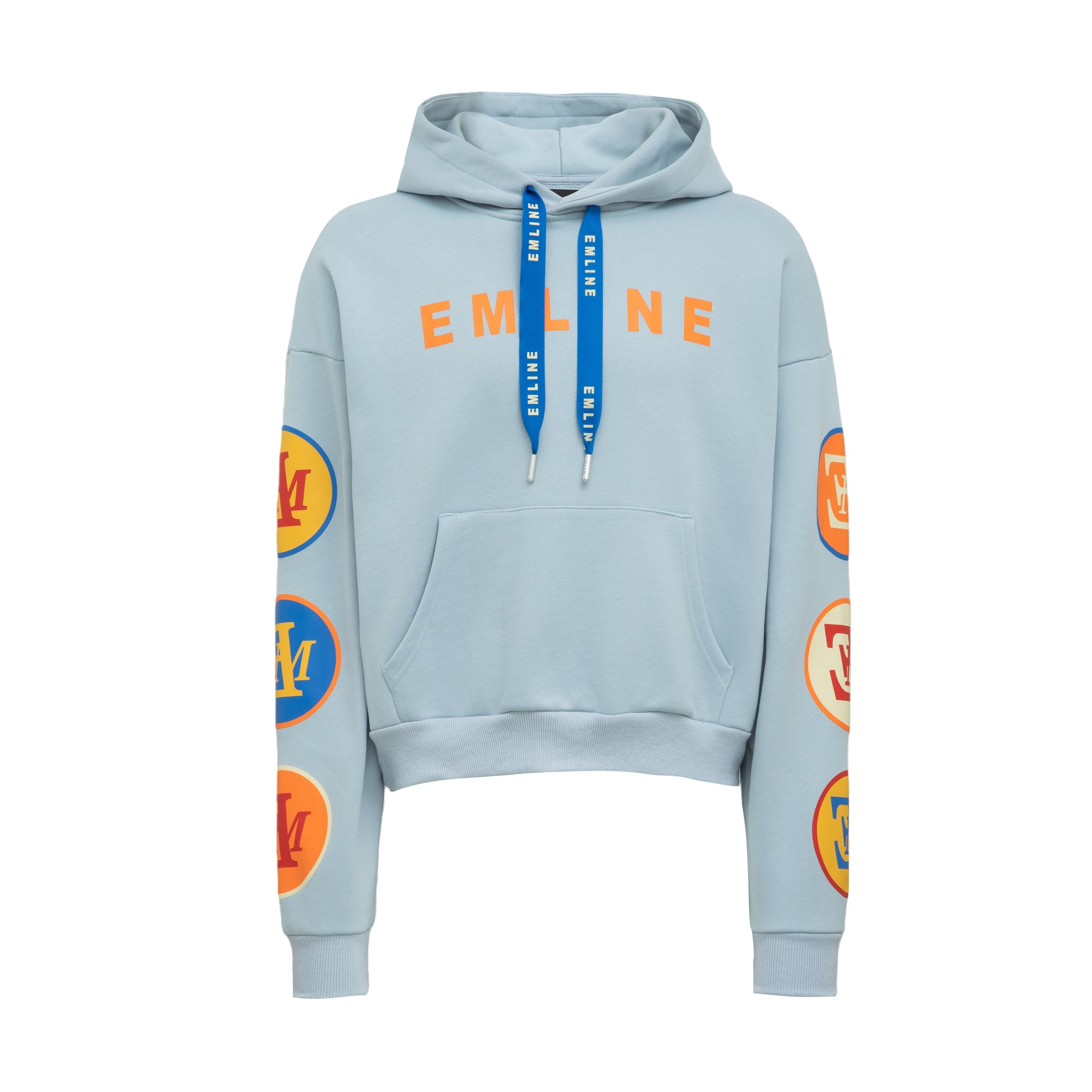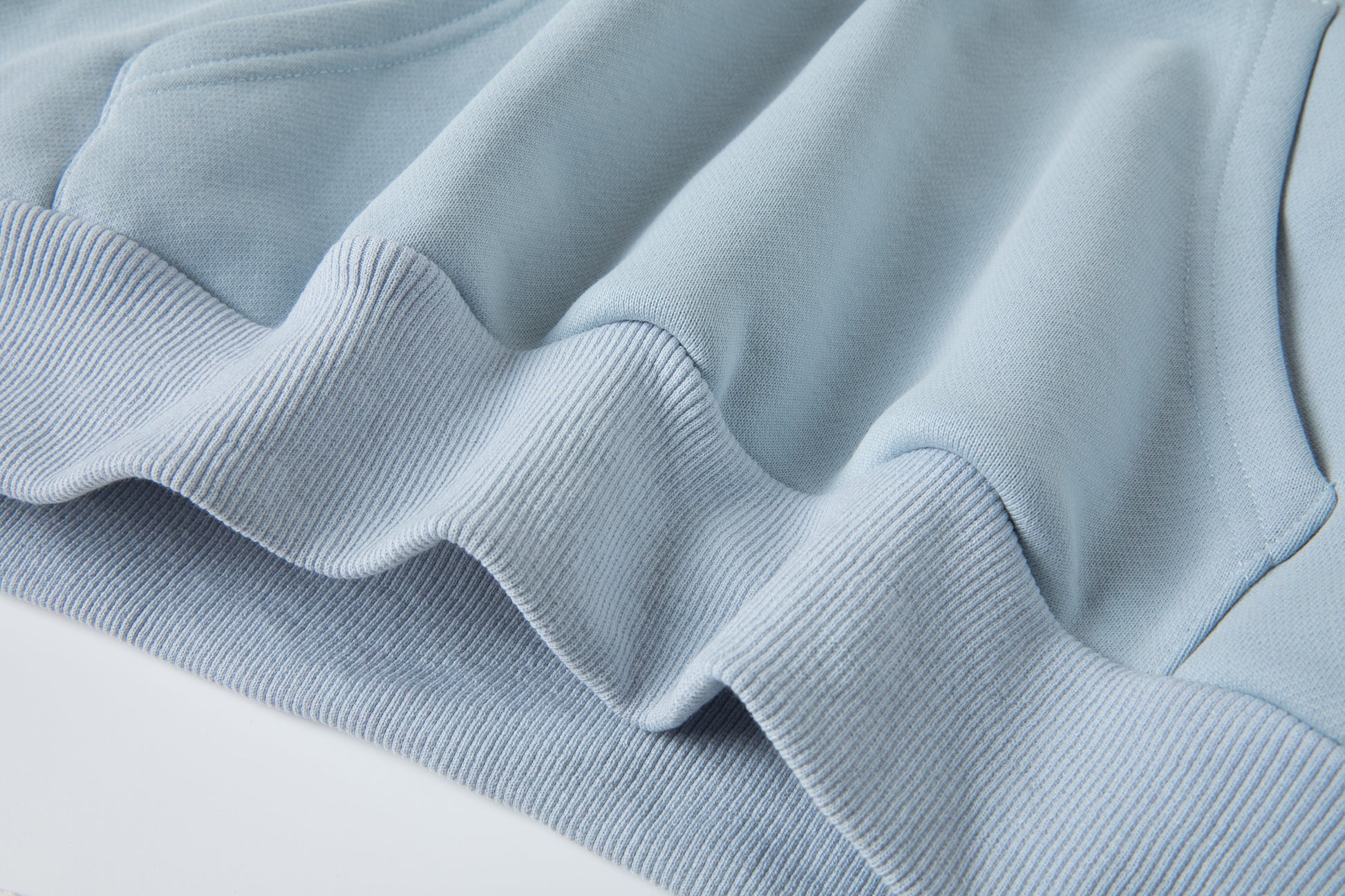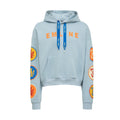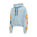 - 100% French Terry hoodie in light blue.