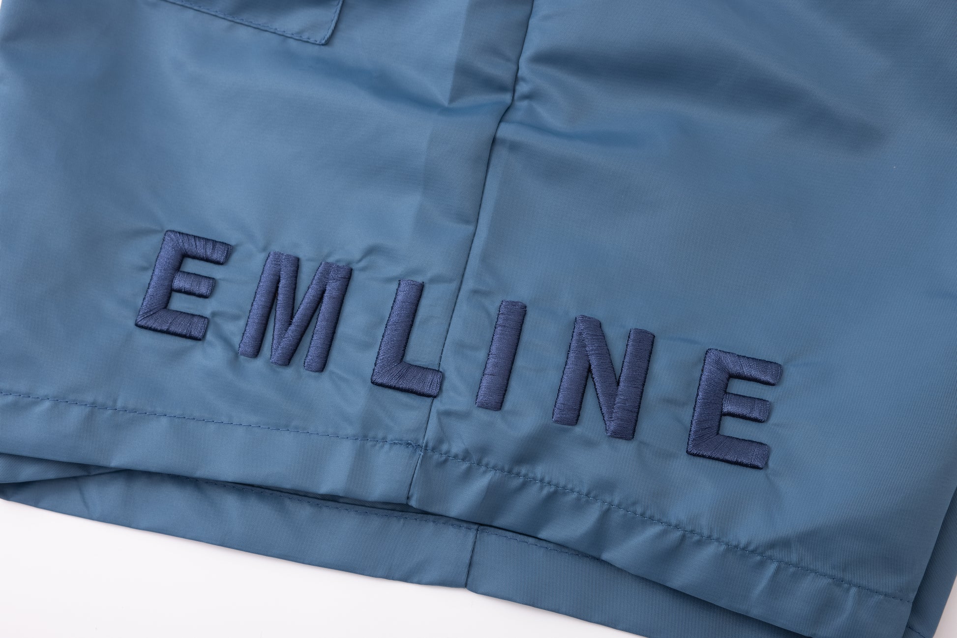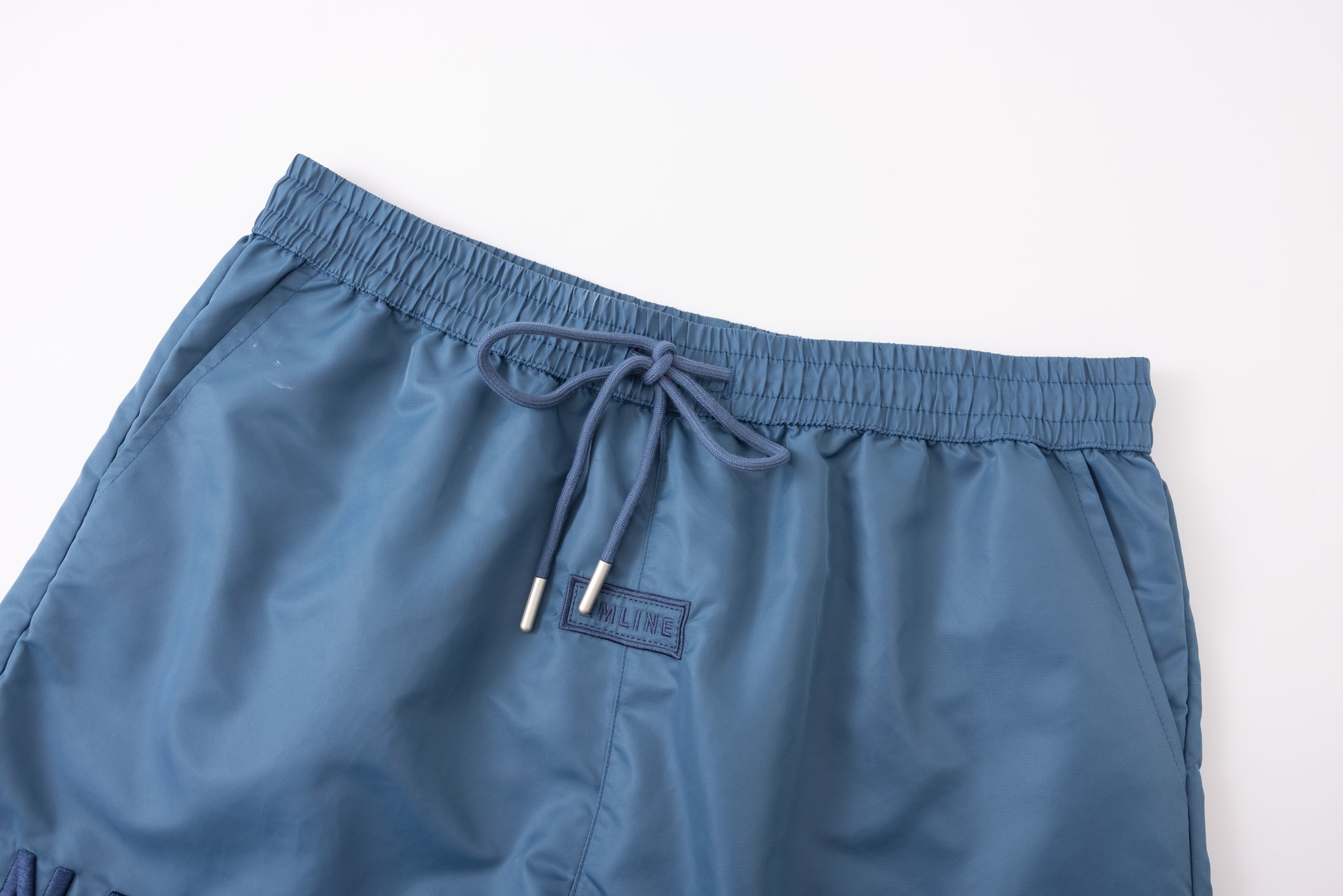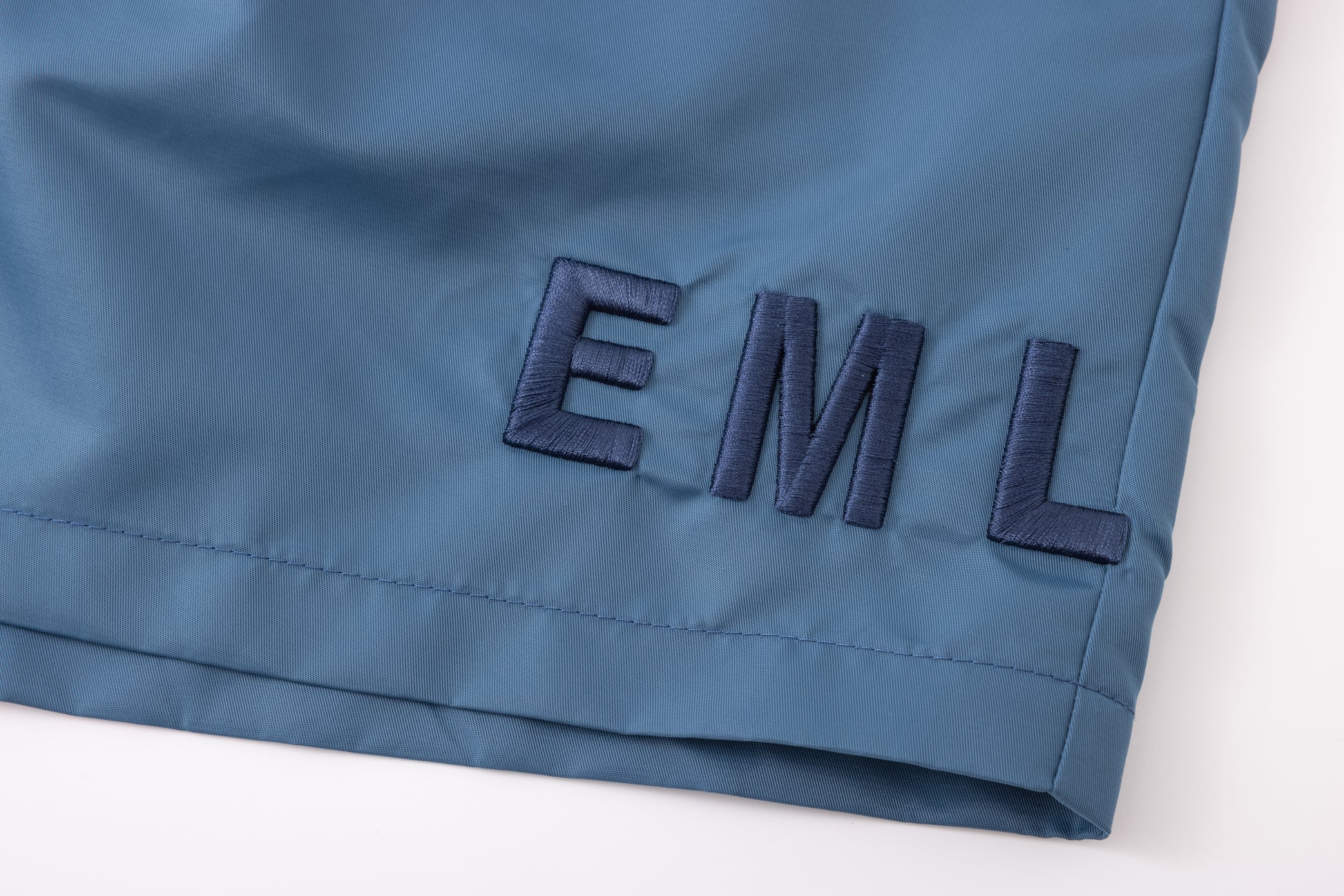 - Embroidery at left and right leg in navy.