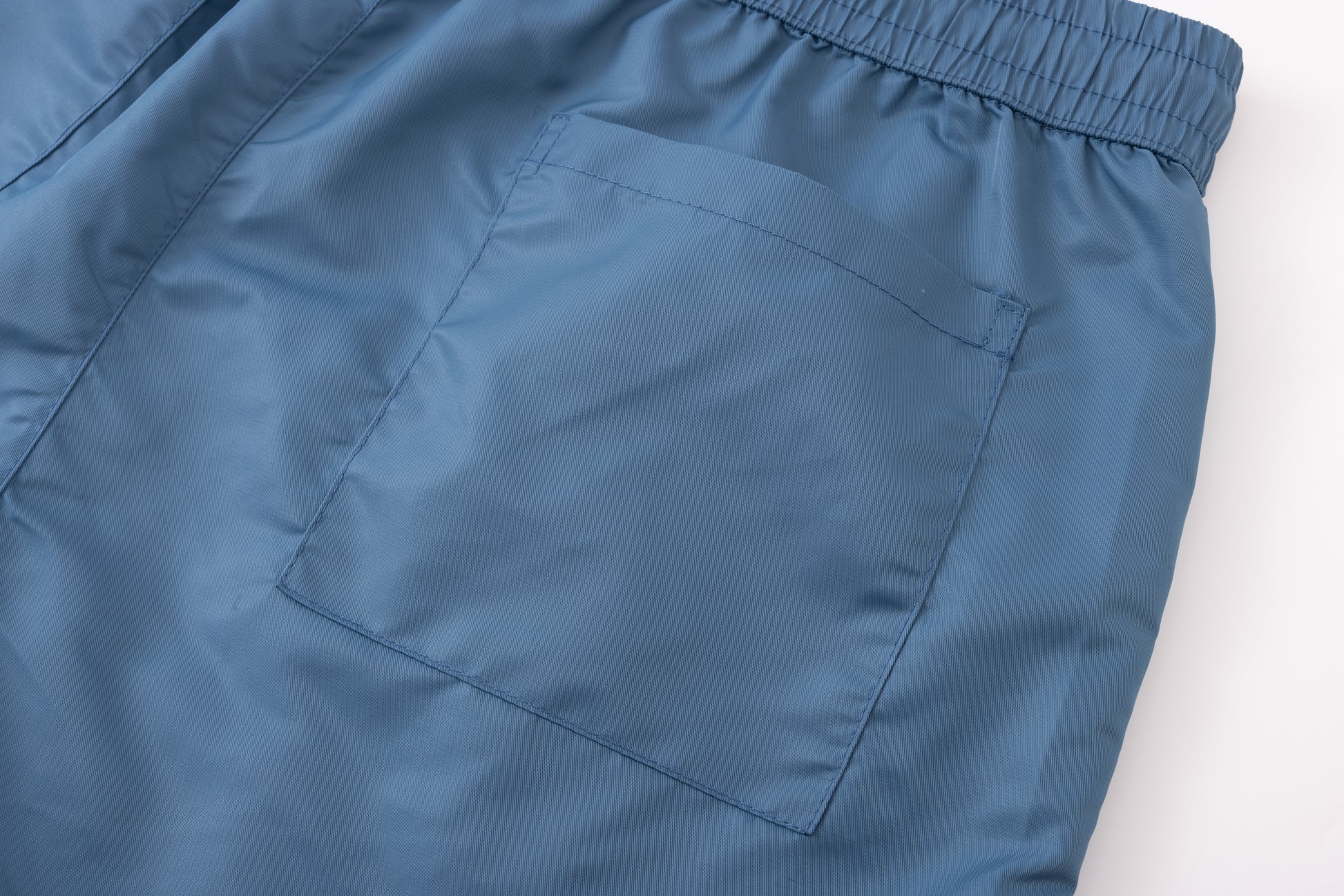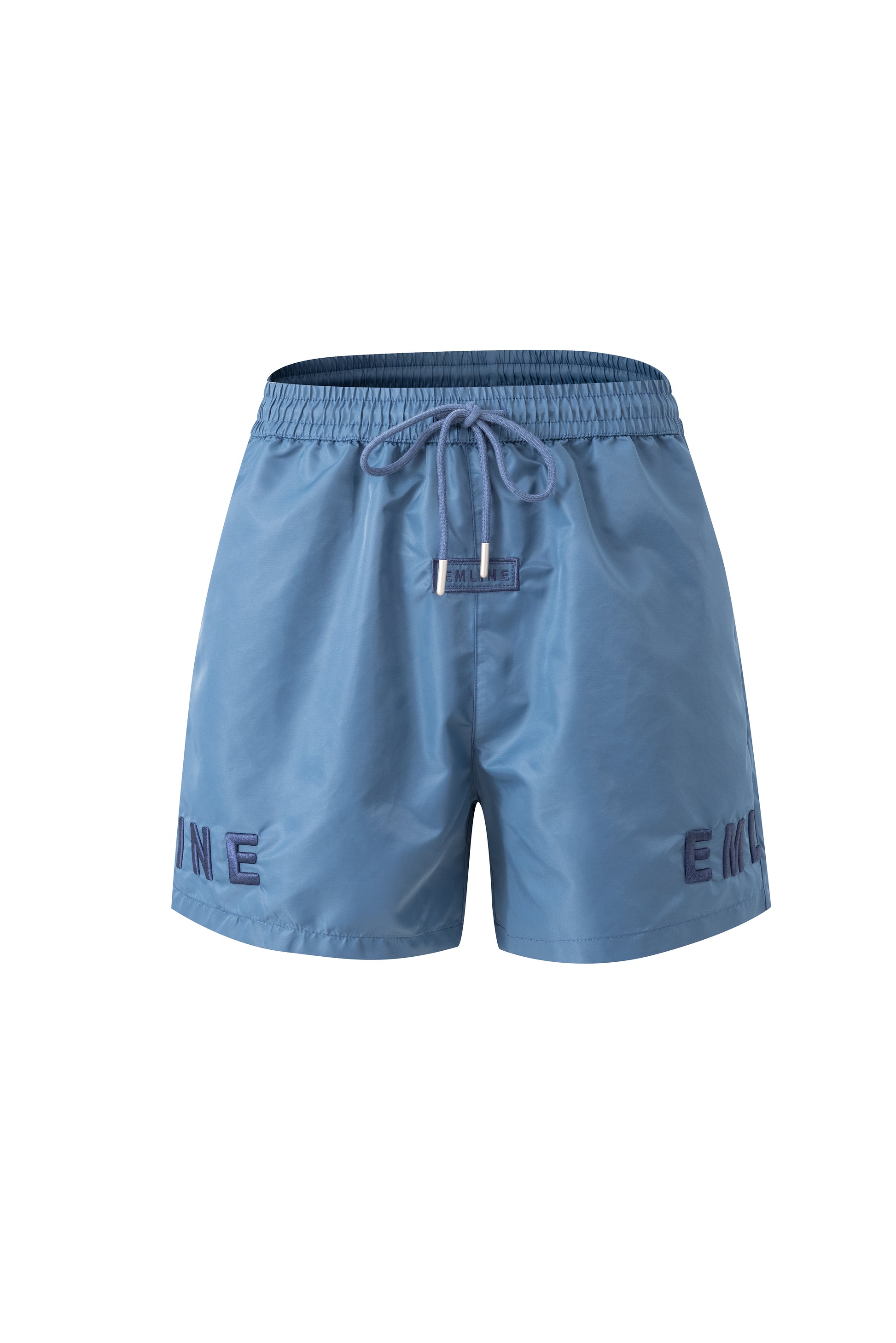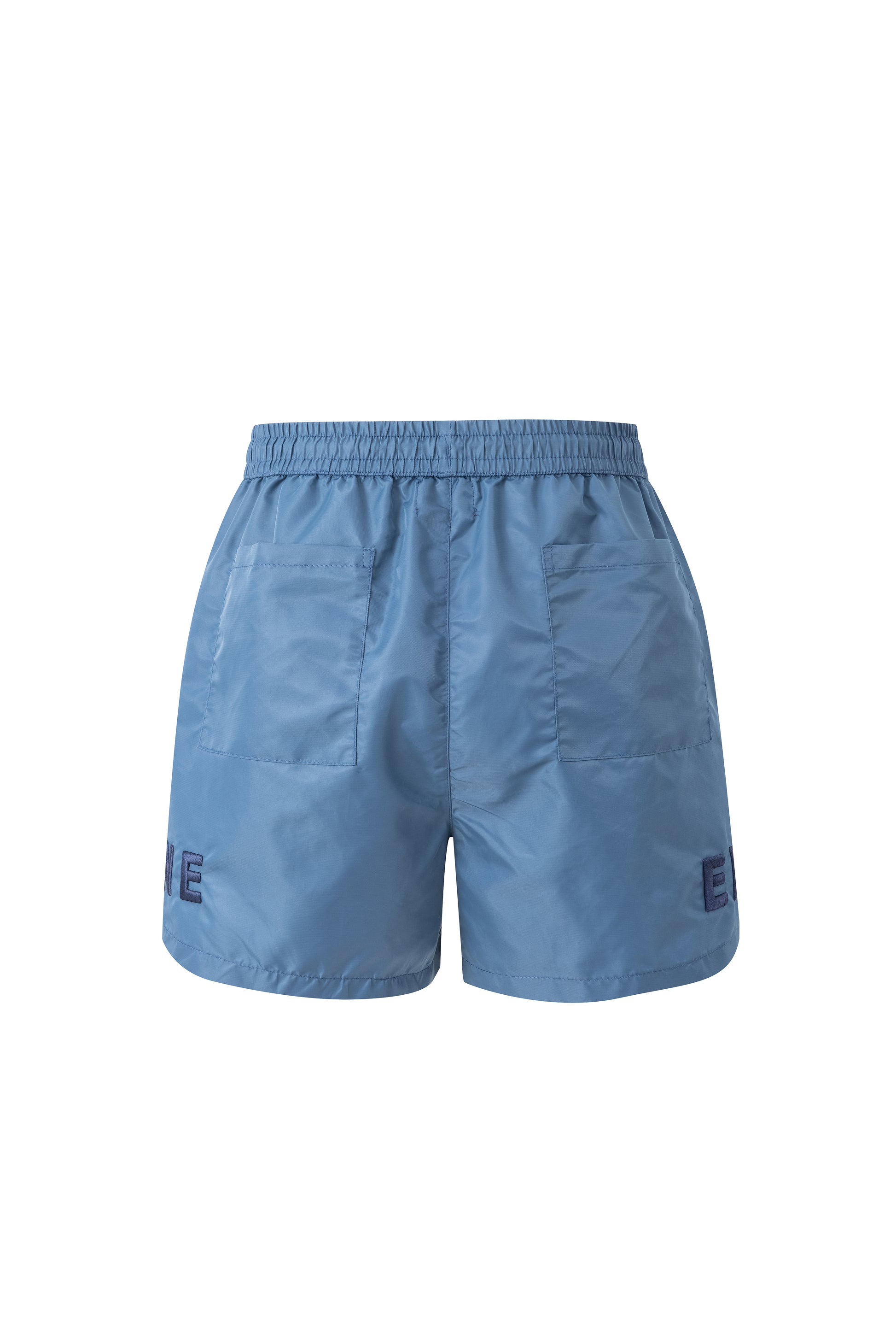 - Satin shorts in light navy.