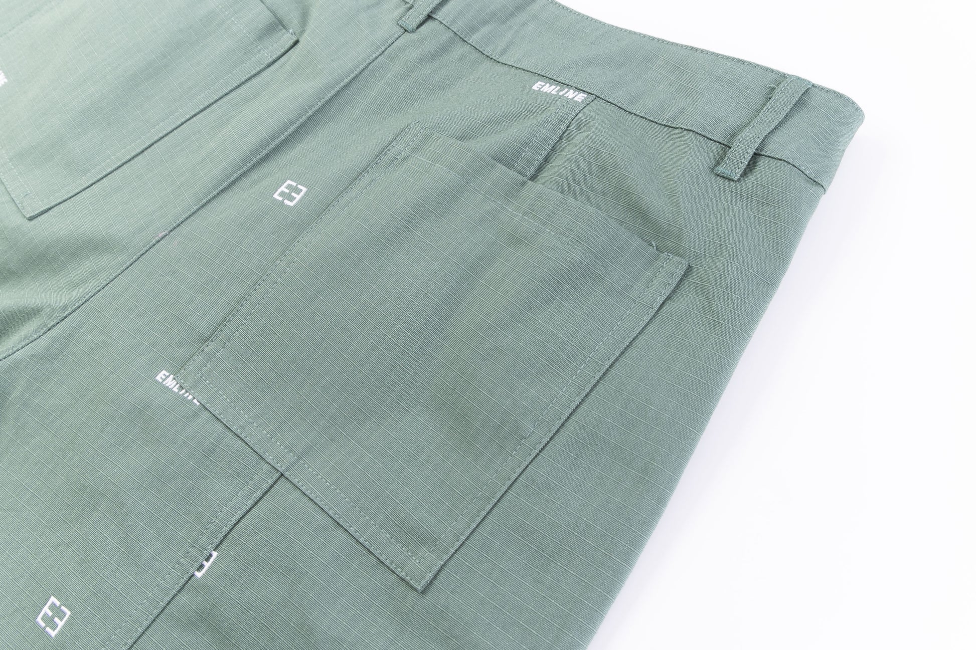 - Embroidery throughout in white.