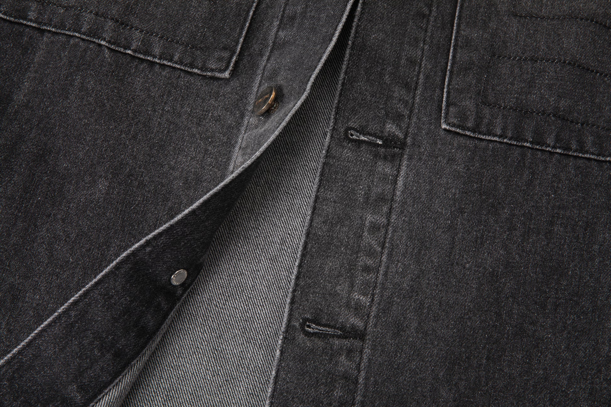 - Logo button in Silver nickel at waist.