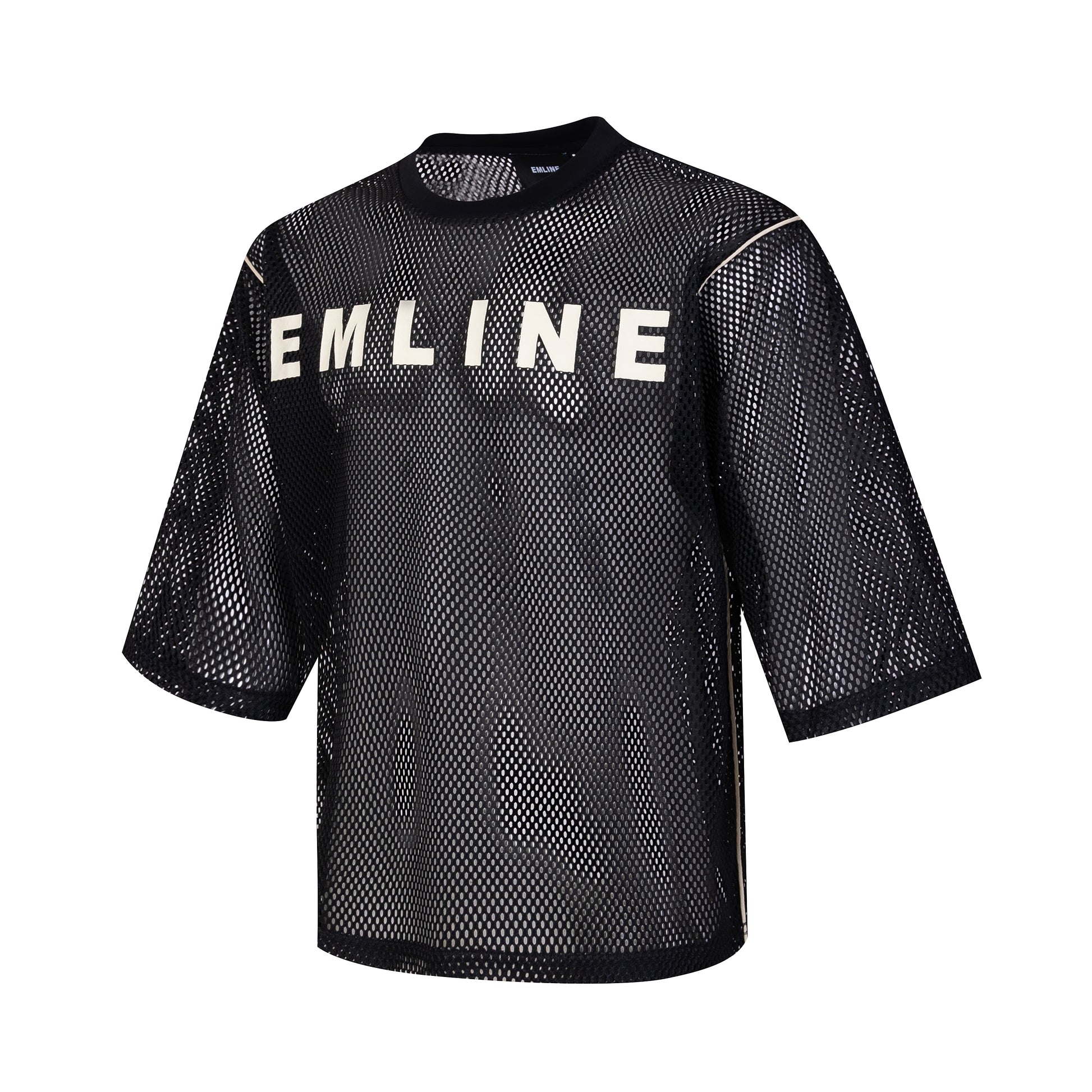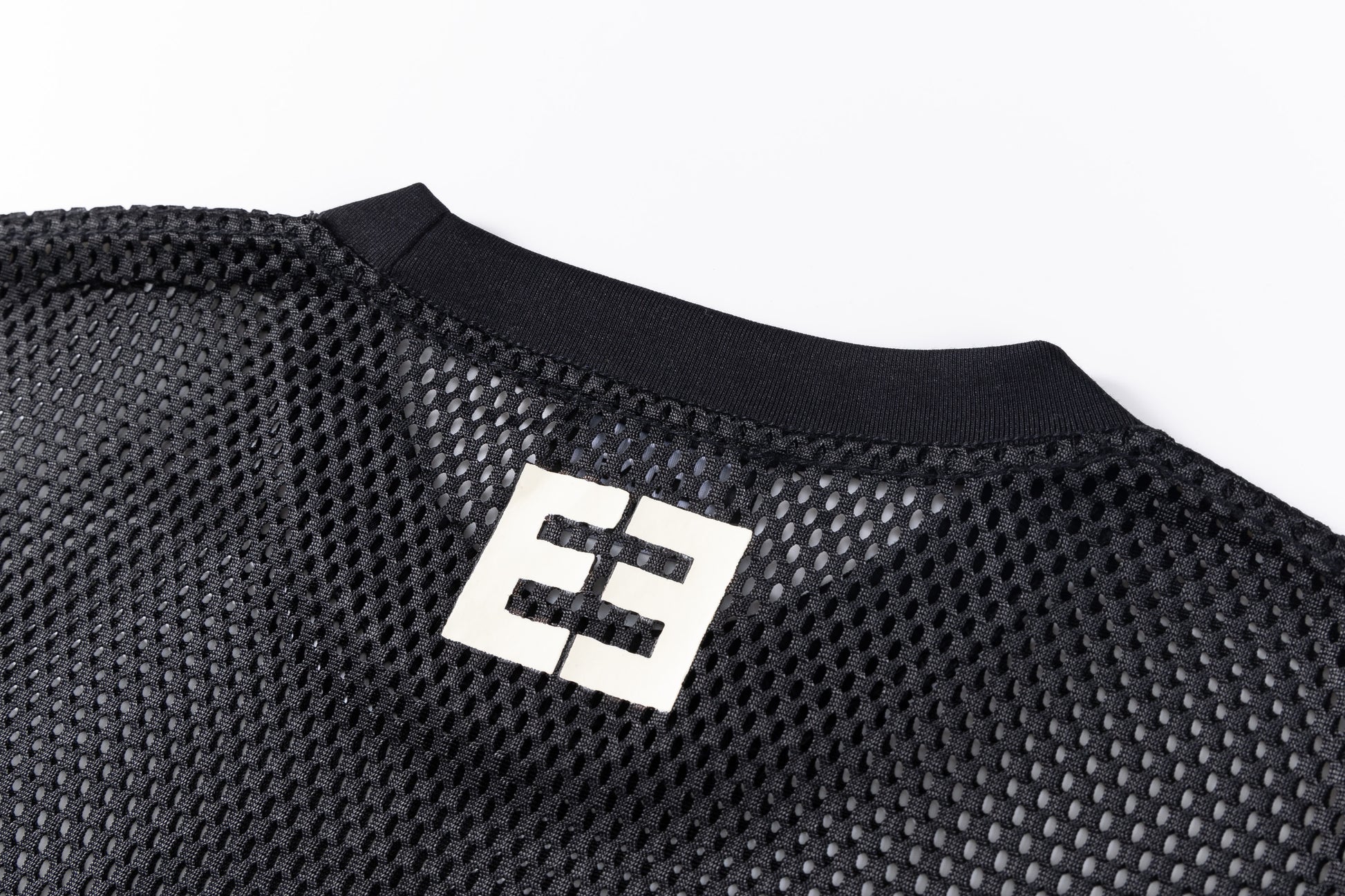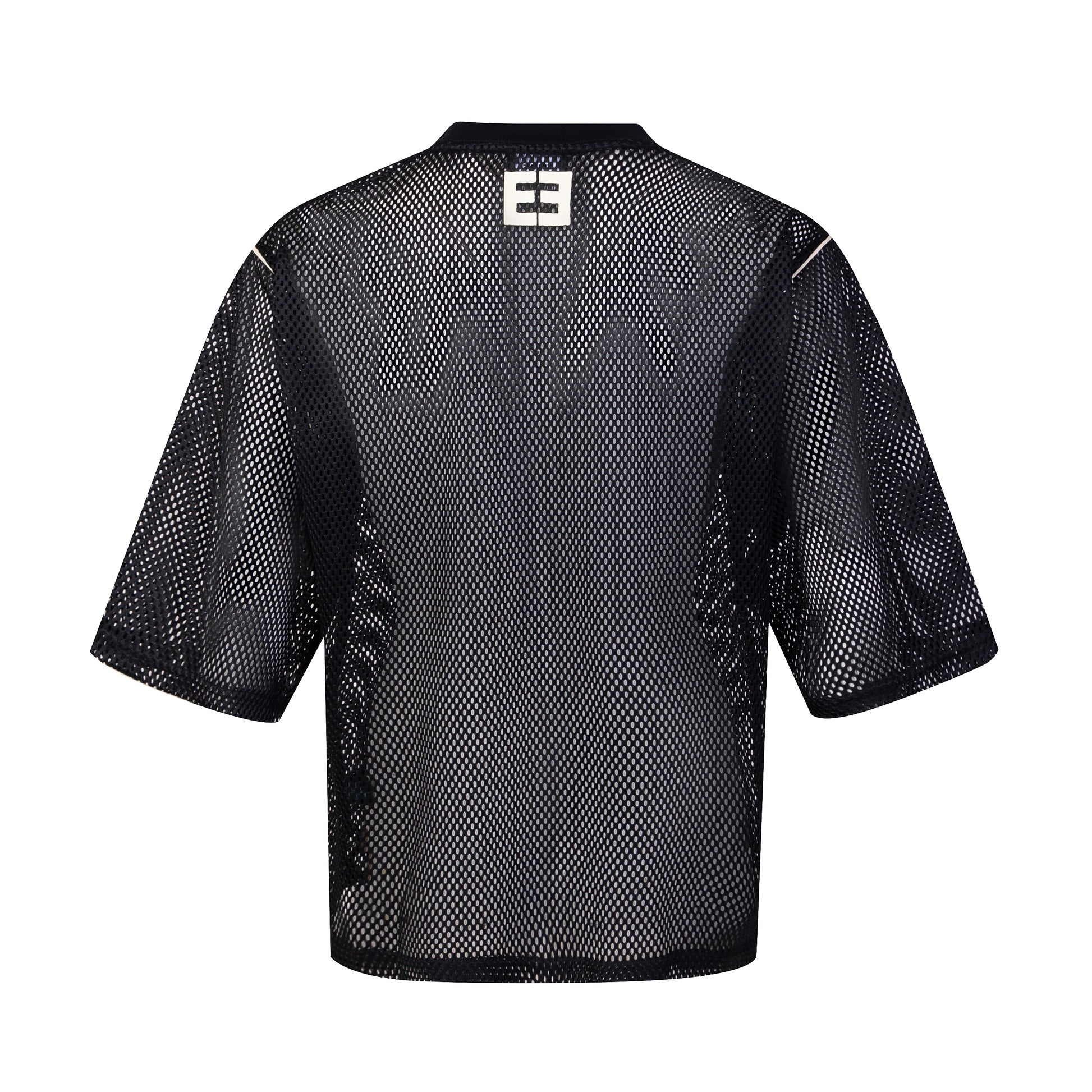 - Heavy mesh jersey in black.