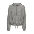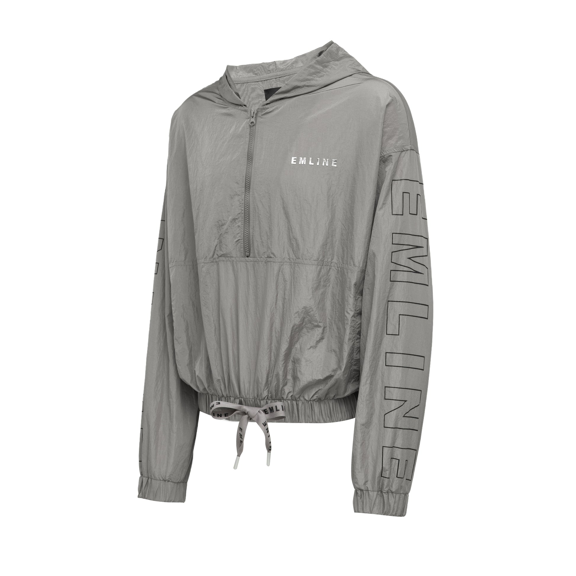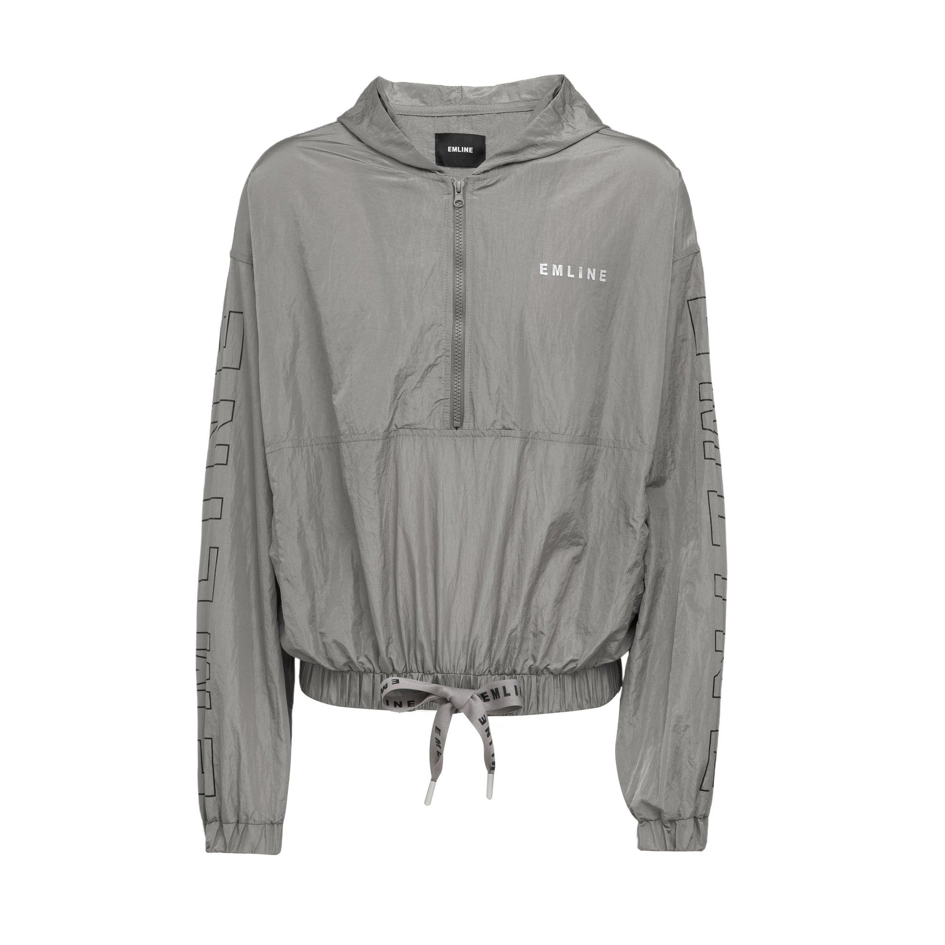 - Half zip pull over long sleeve windbreaker top in dark gray.