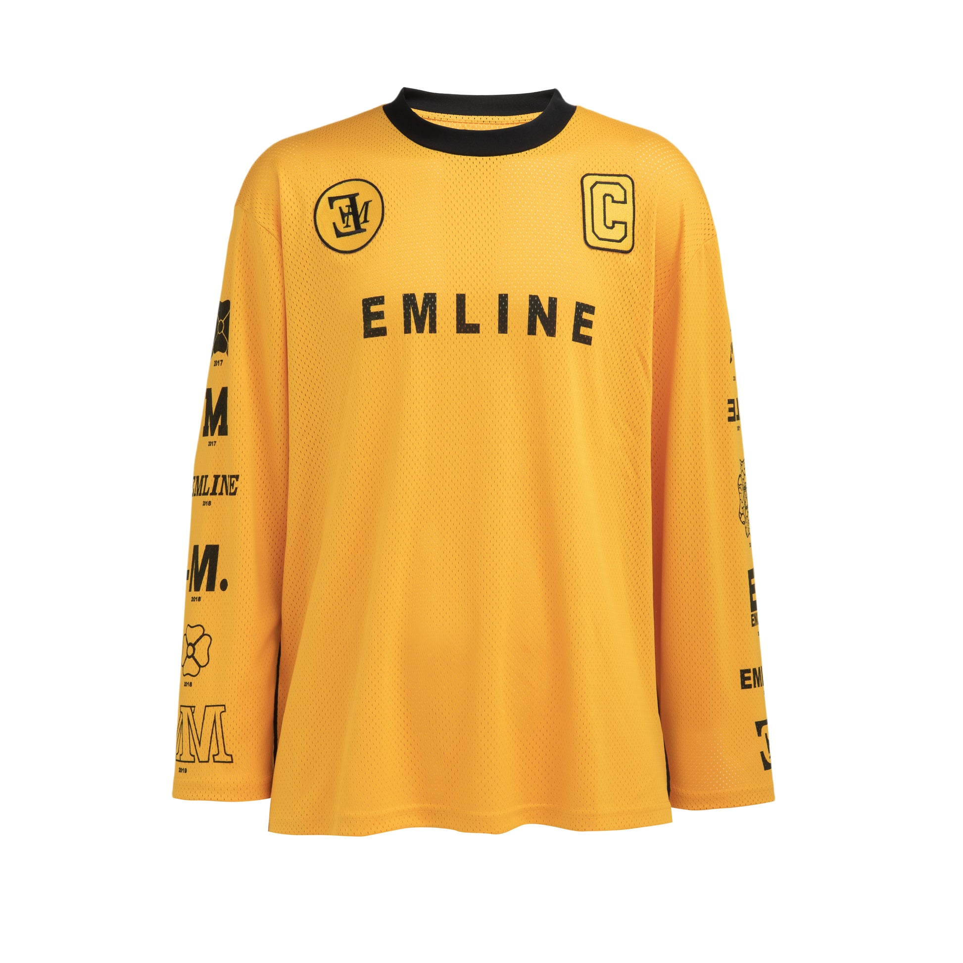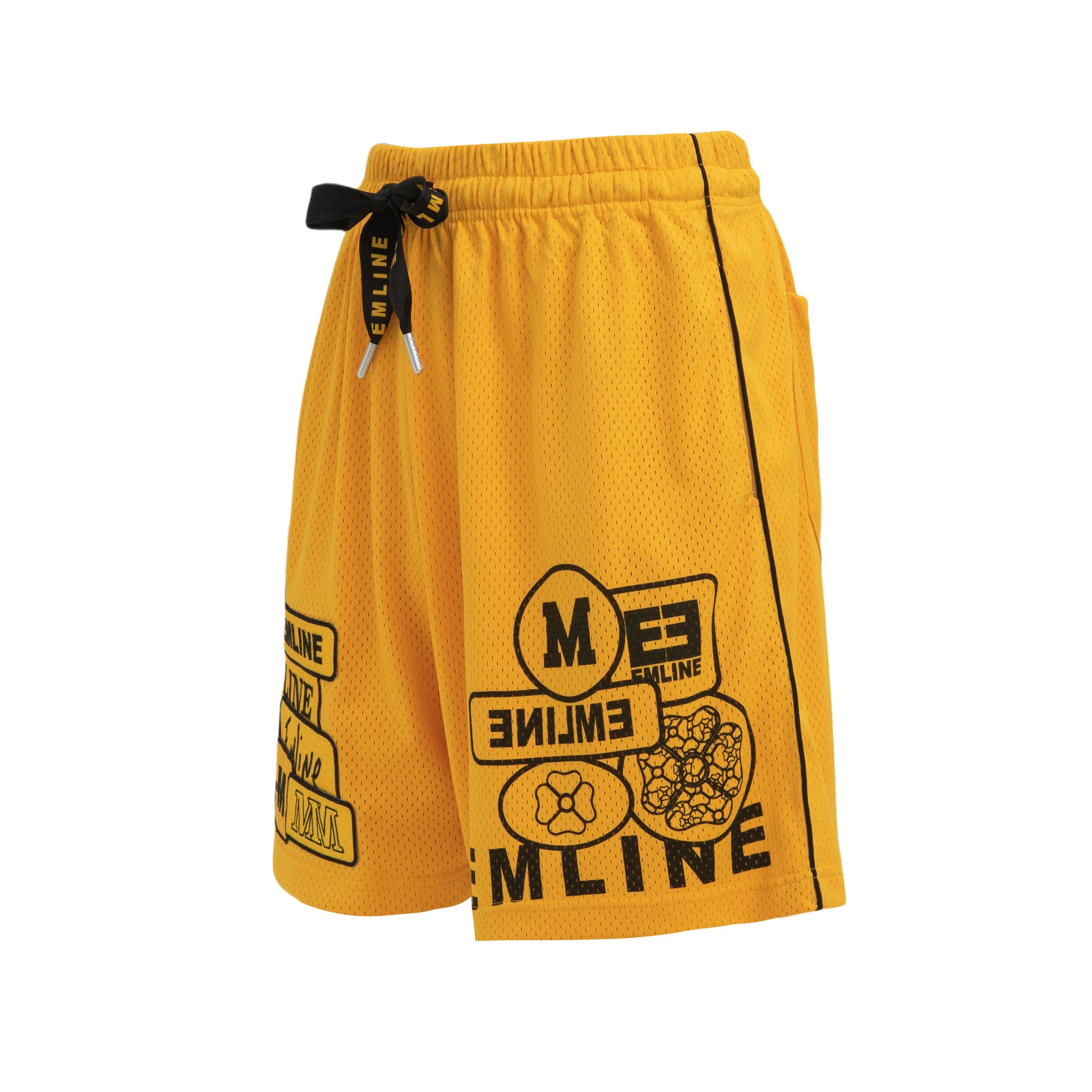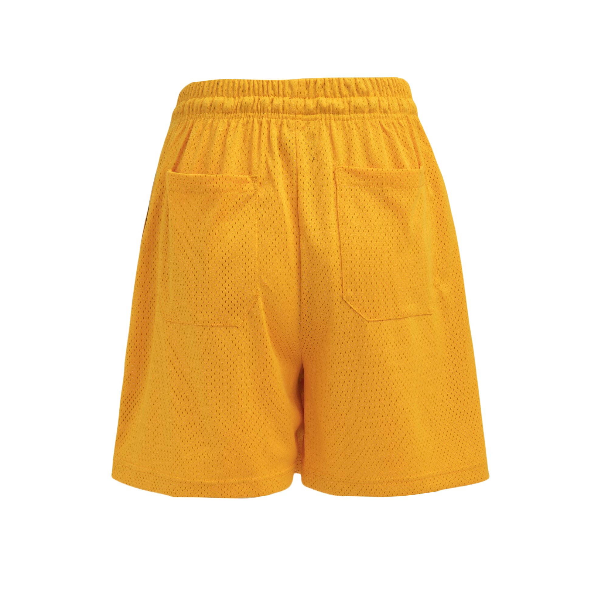 - Heavy mesh shorts in yellow.
