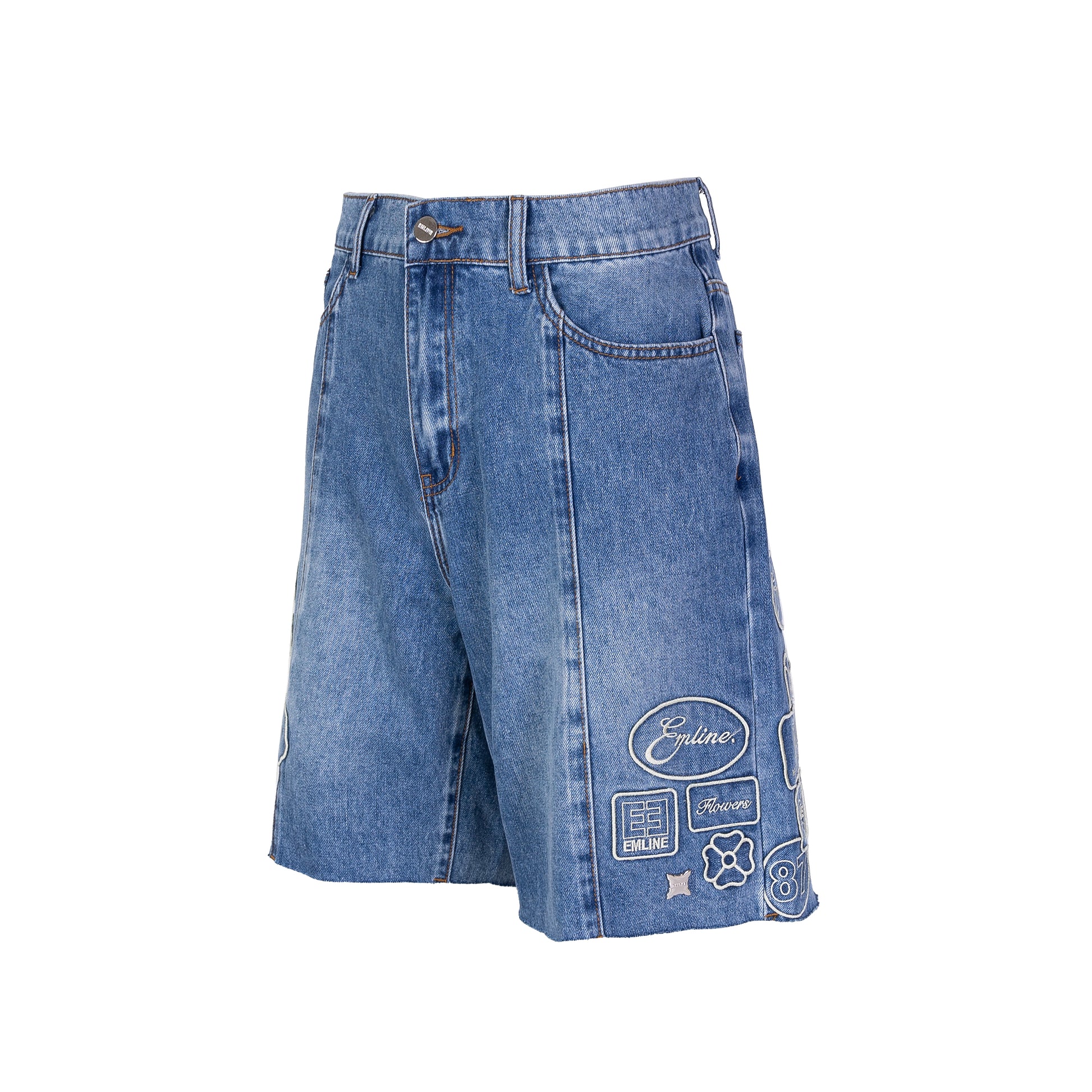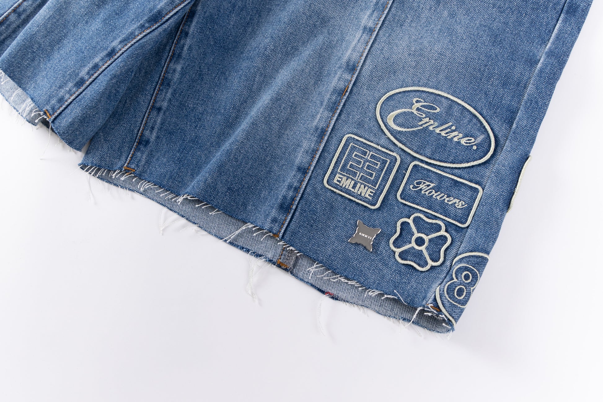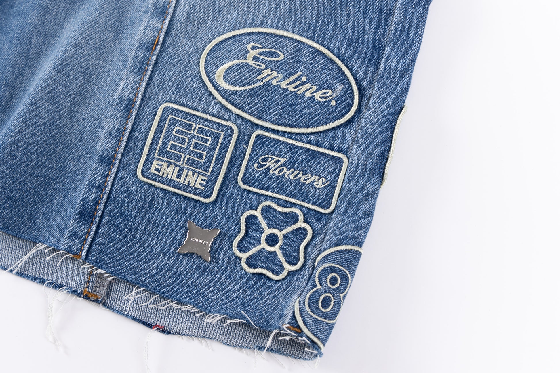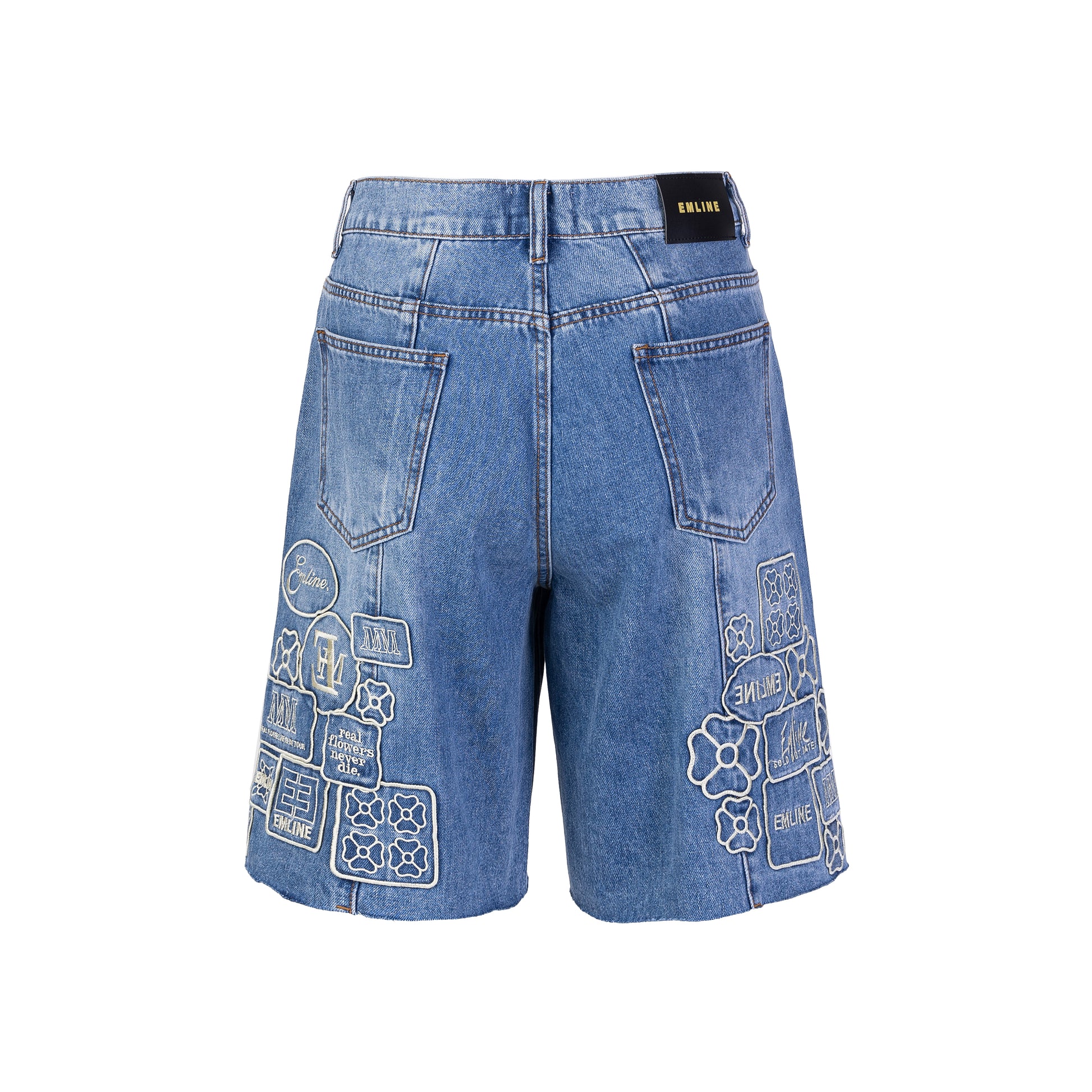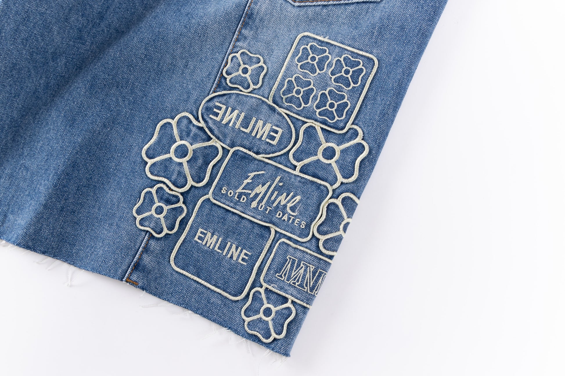 - Embroidery patches throughout in cream.