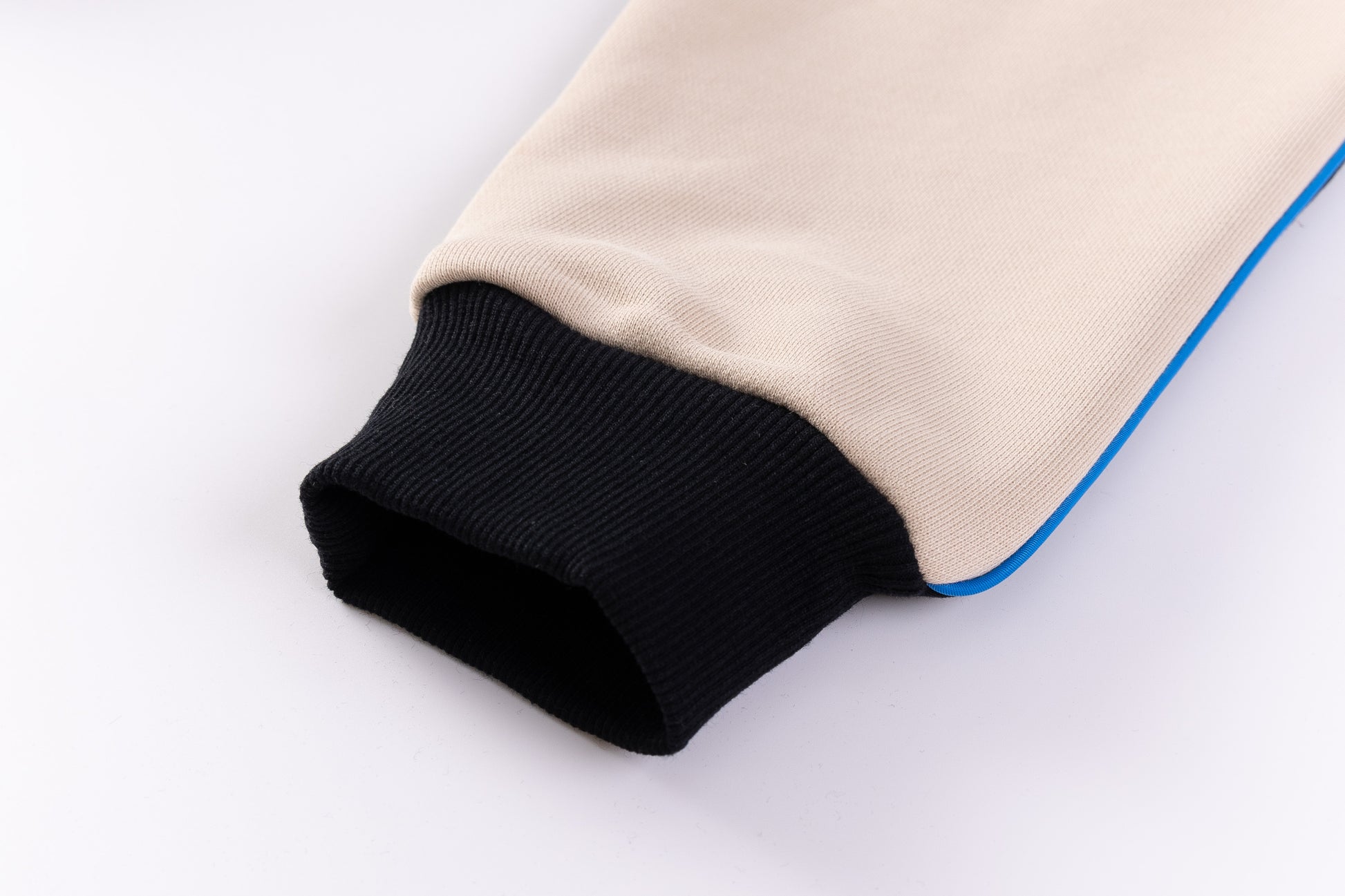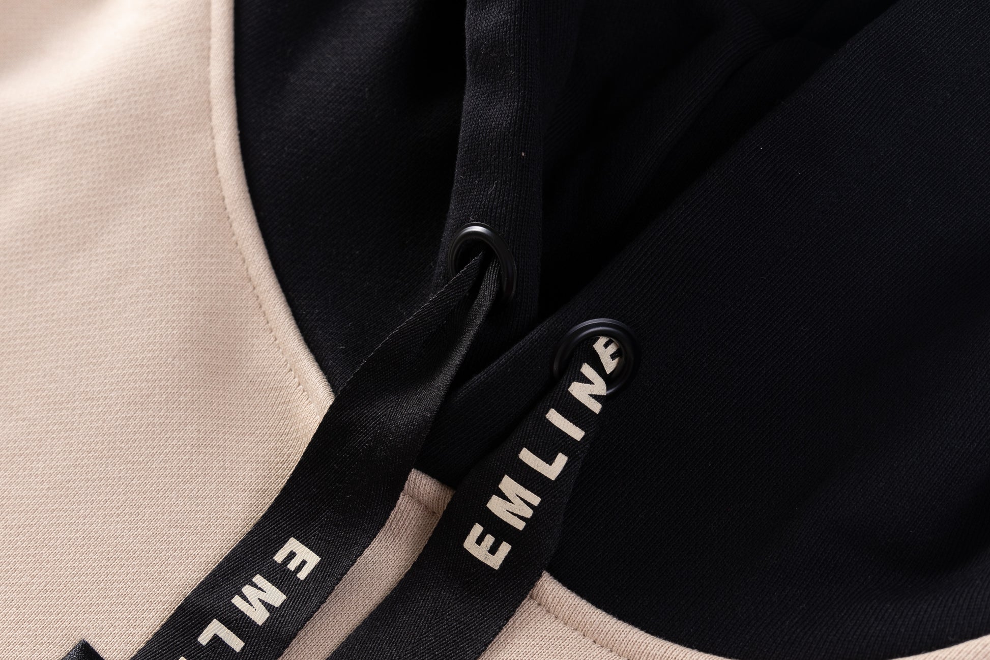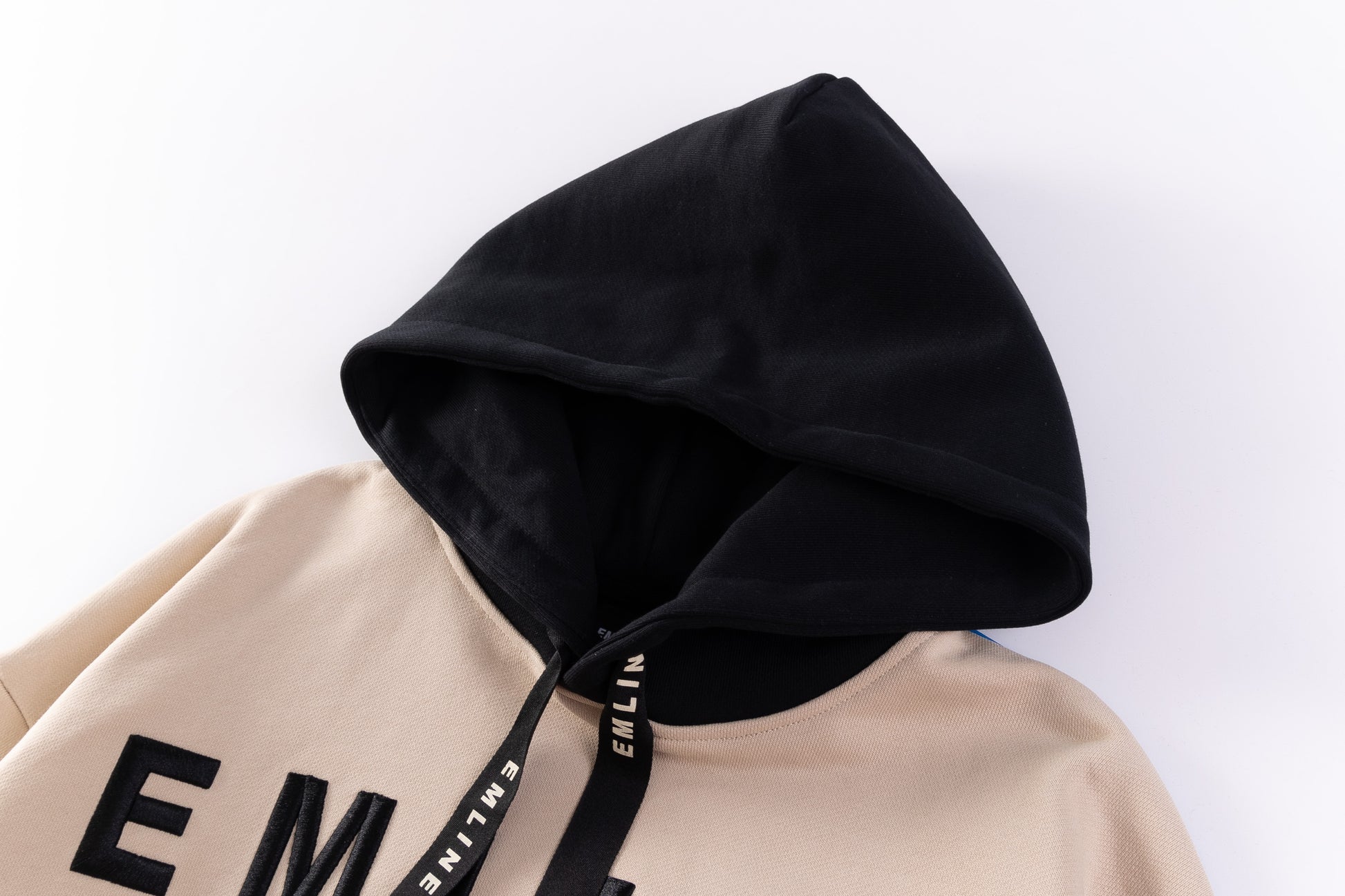 - 100% French Terry 2 tone hoodie in khaki/black.