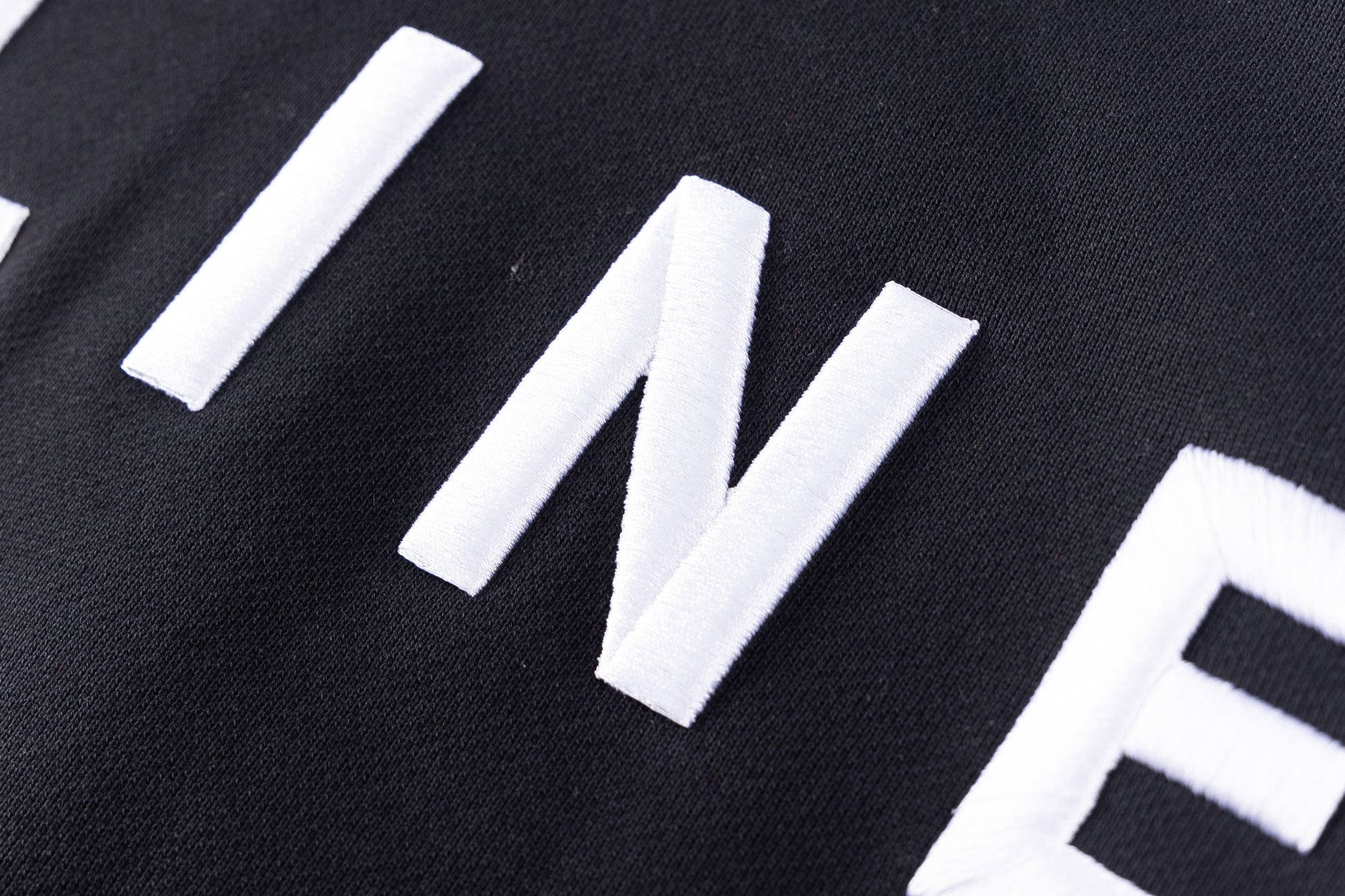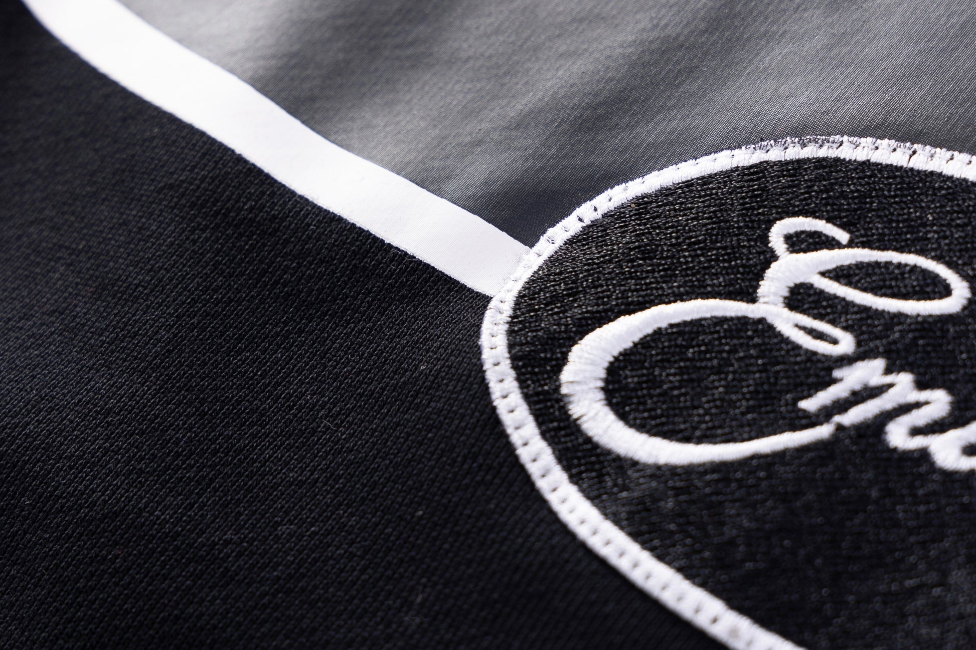 - Embroidery at front chest in white.