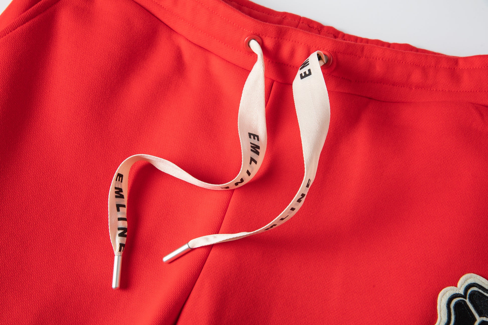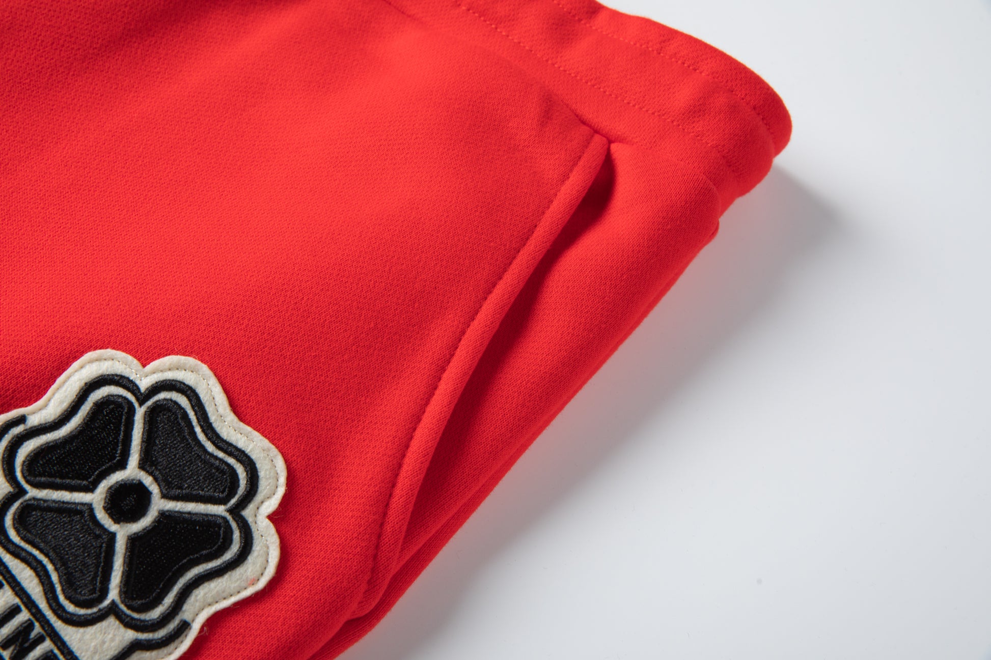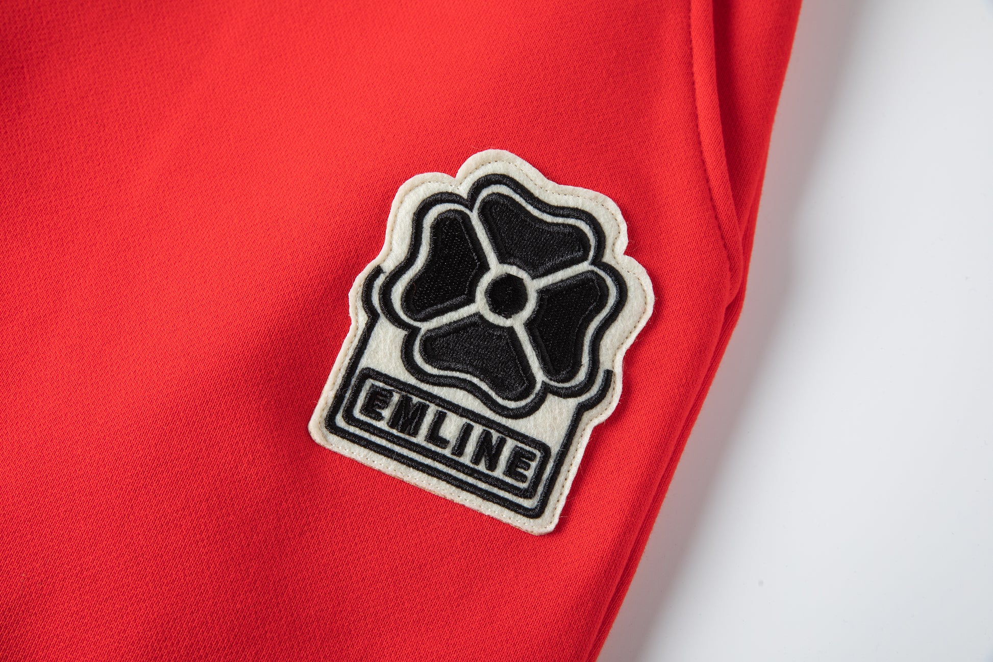 - Logo patch at left leg in black and cream.