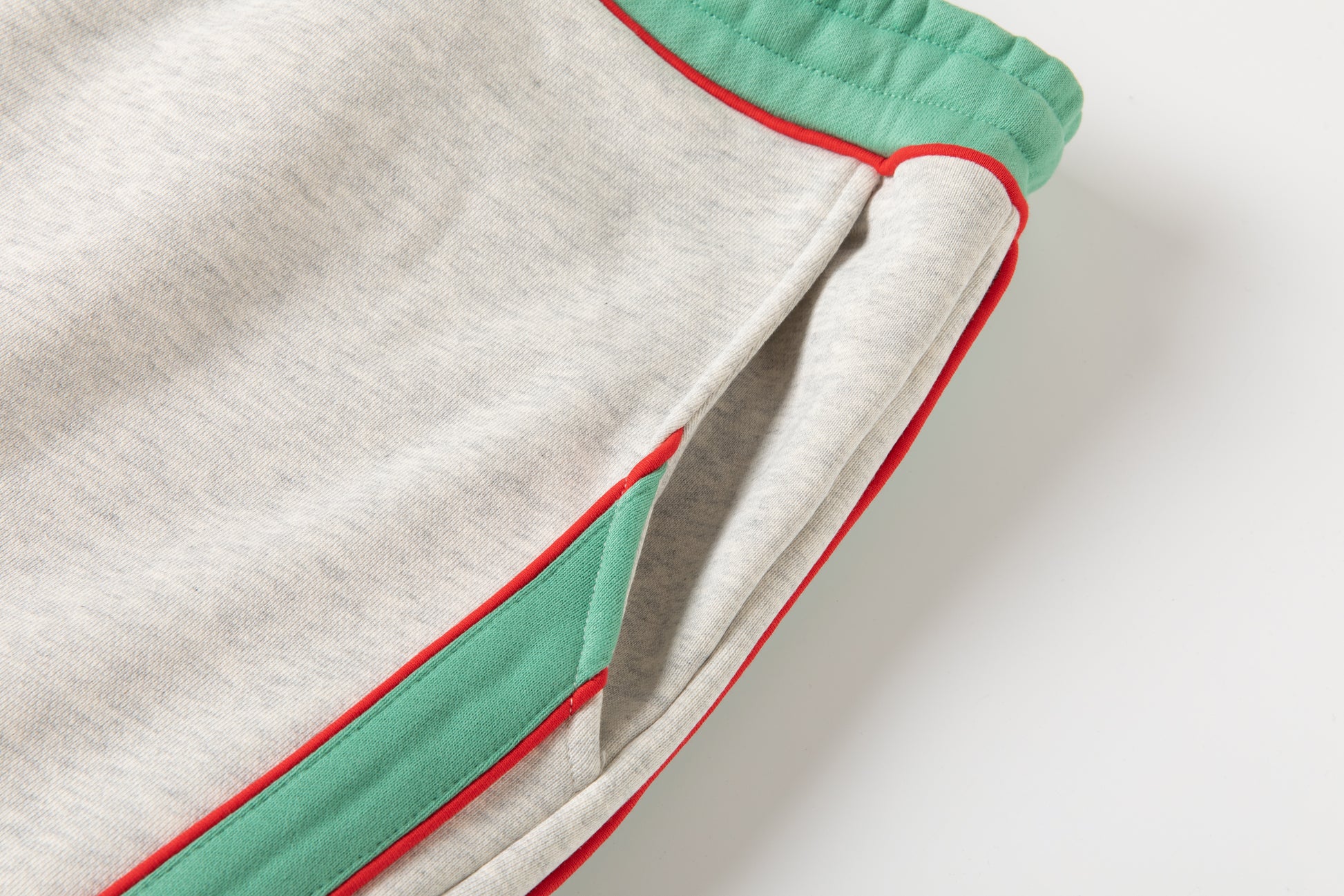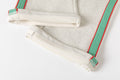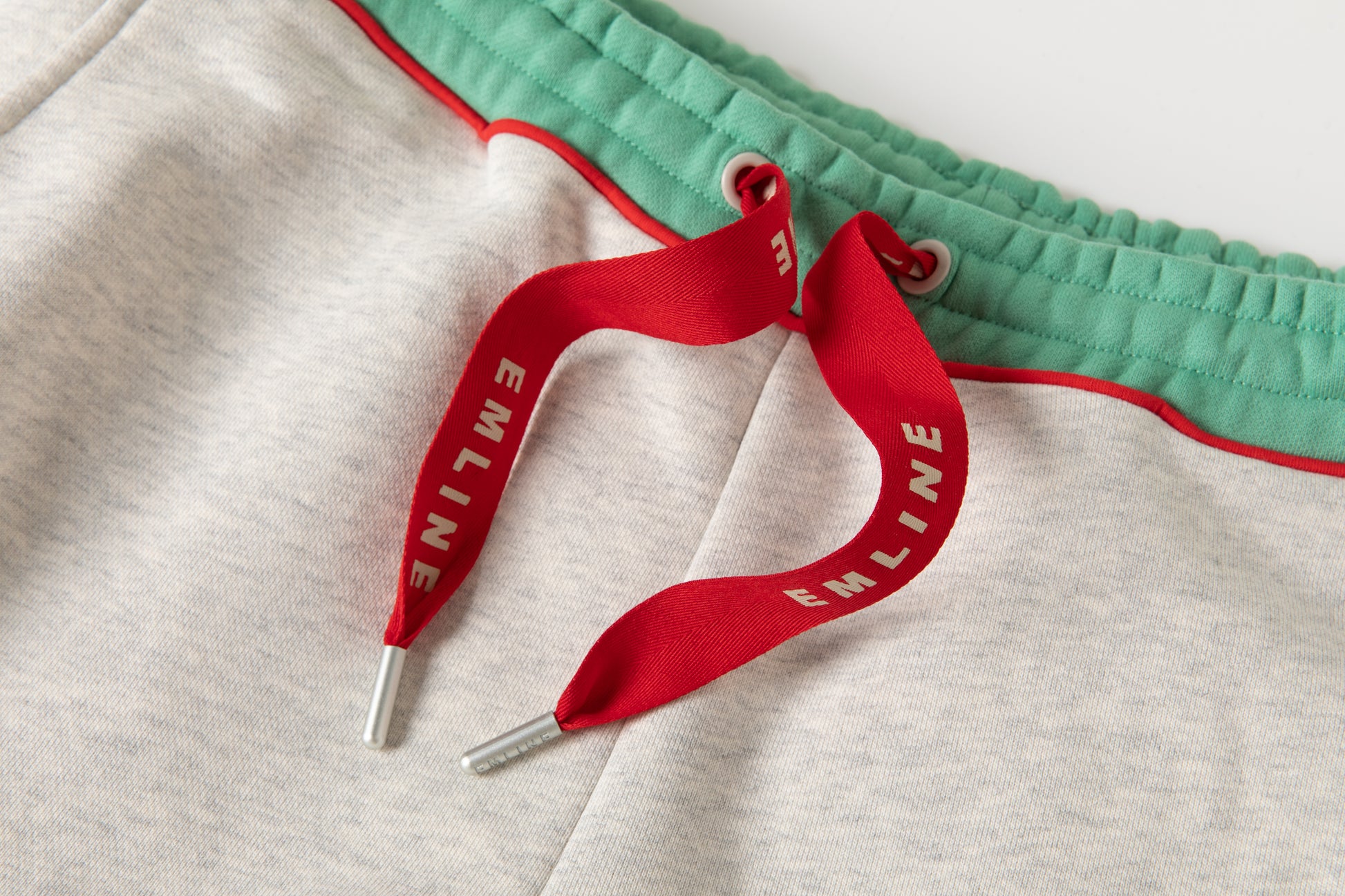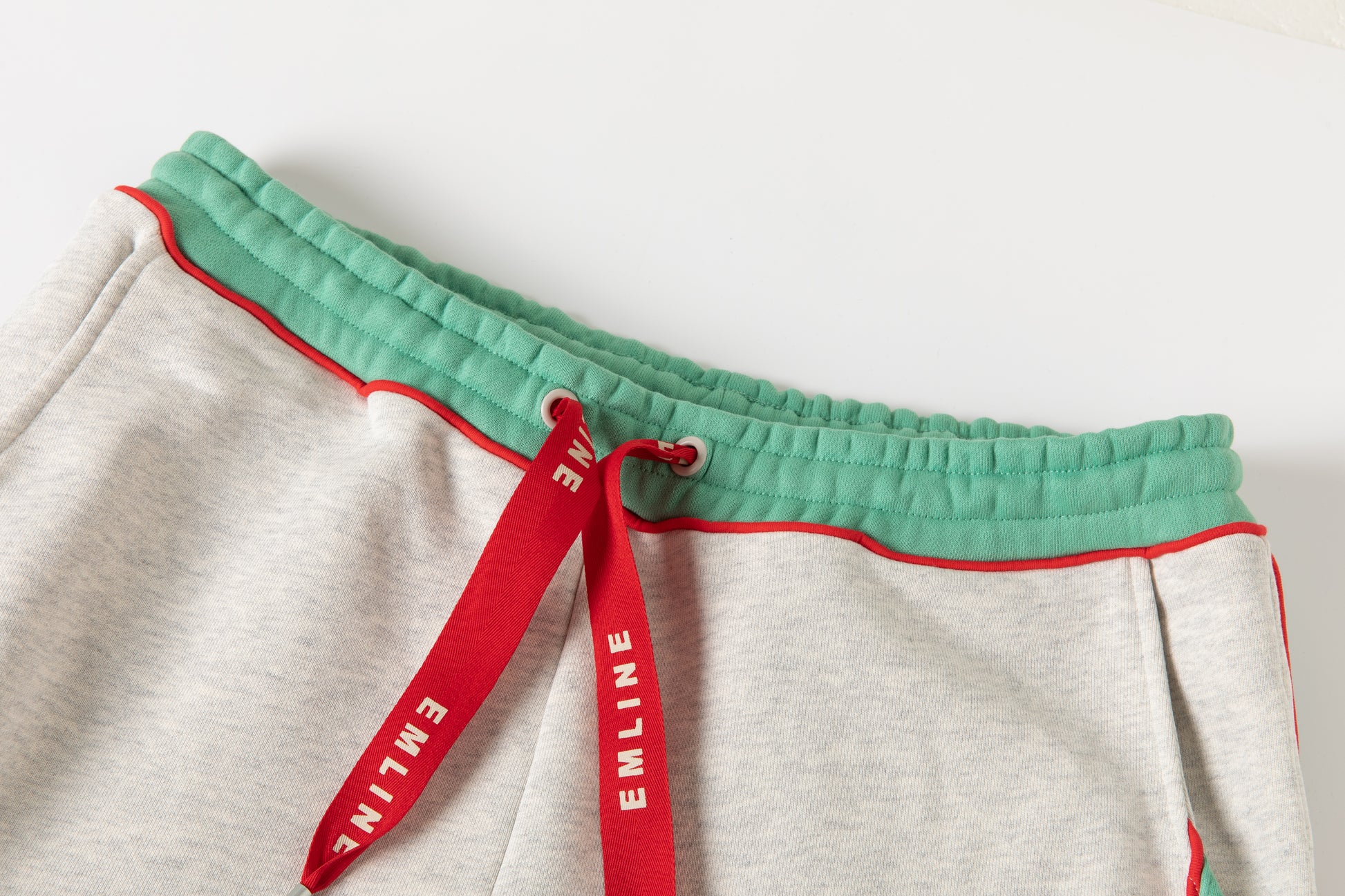 - Drawstring at waist in cream and red.