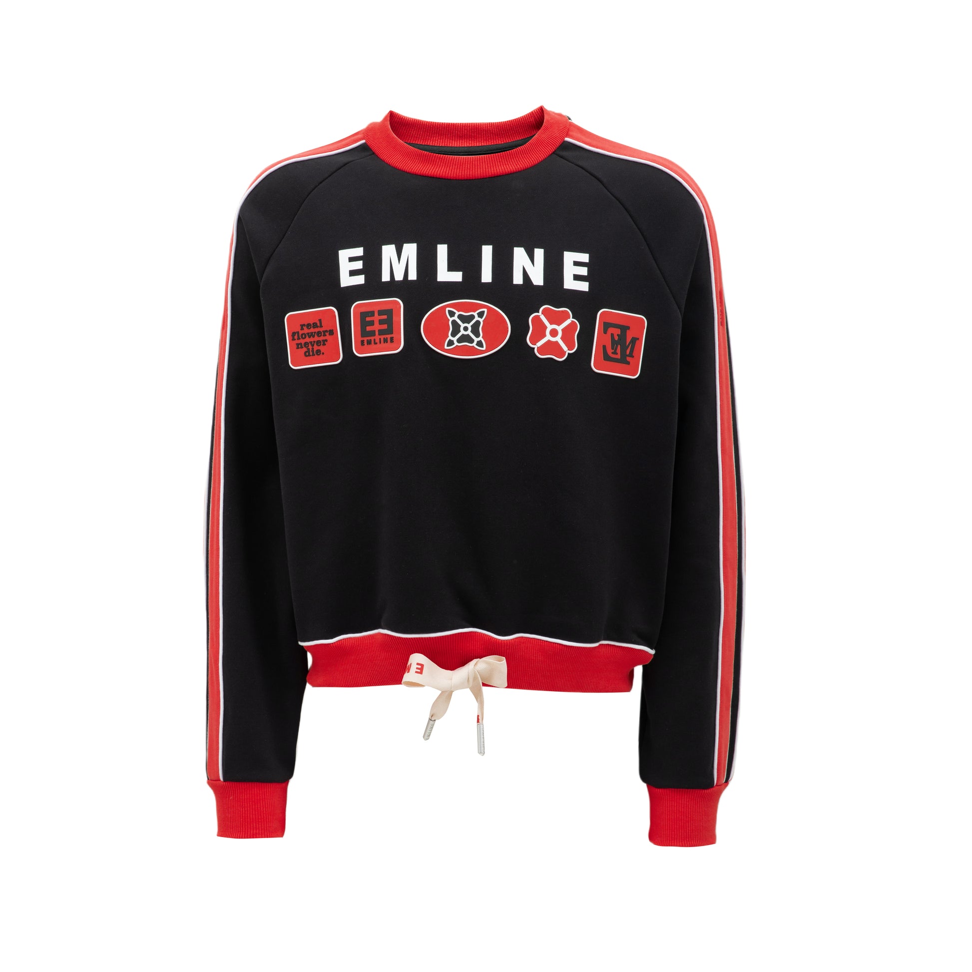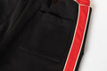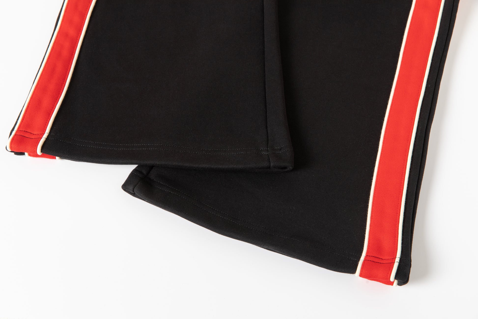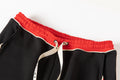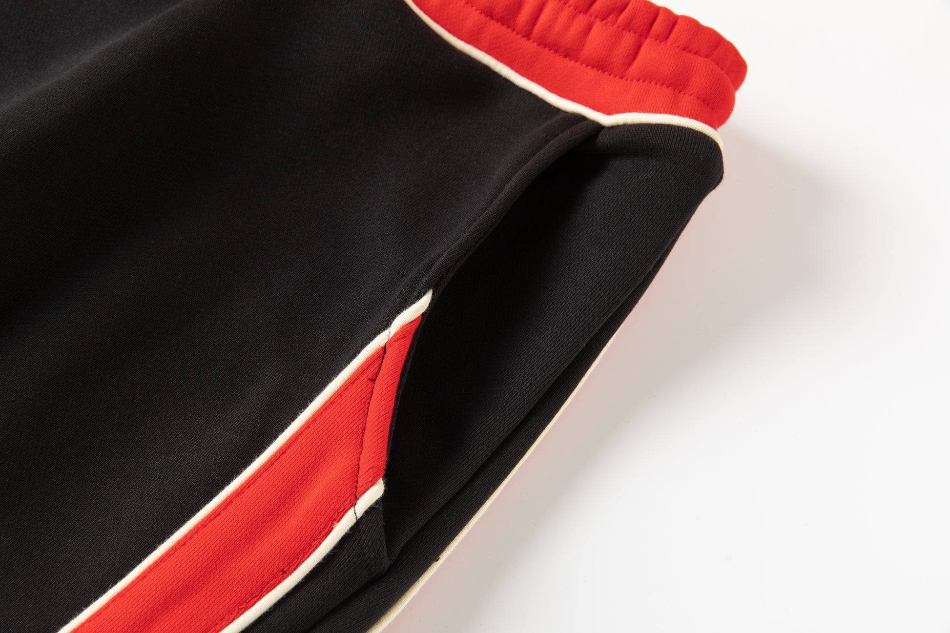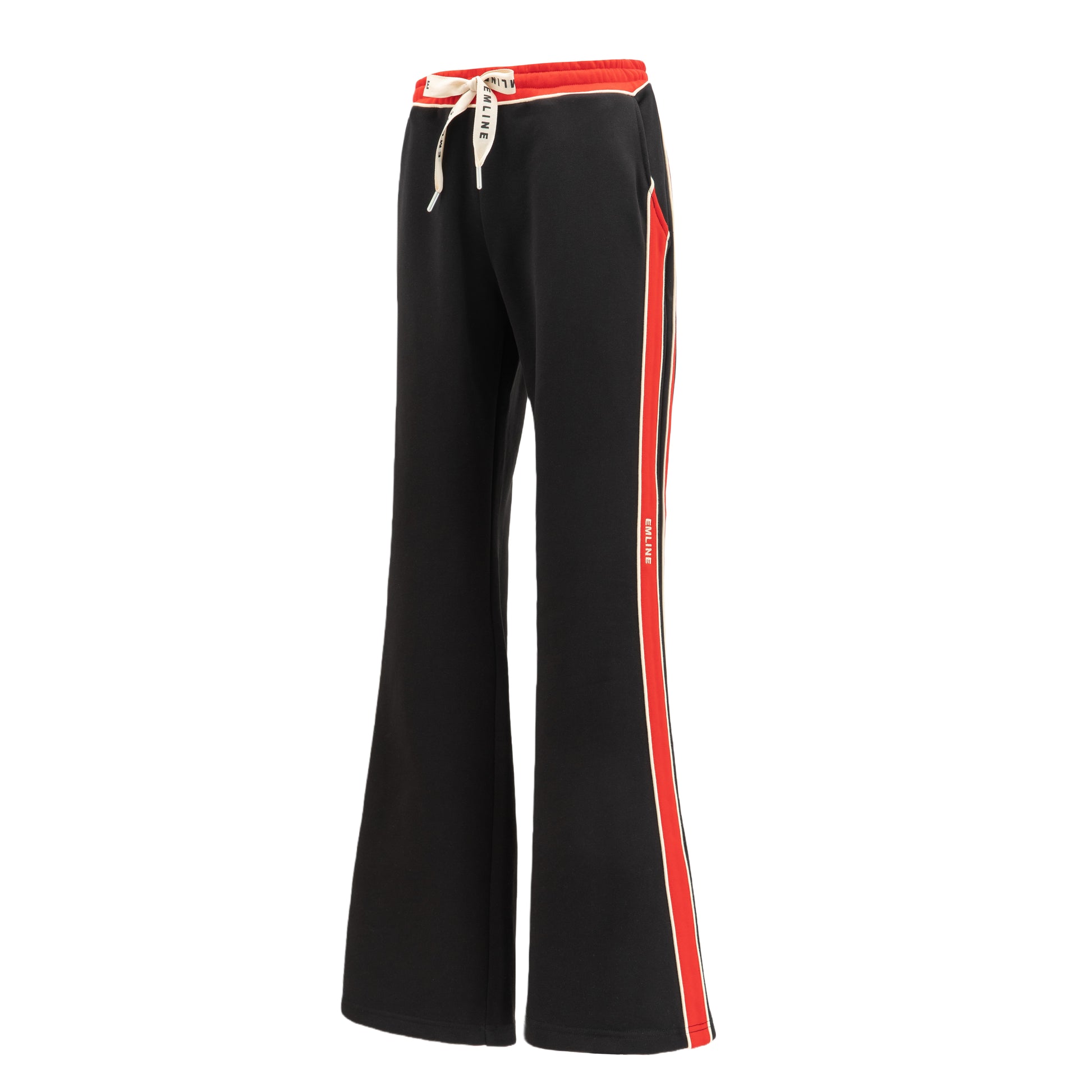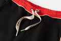 - Drawstring at waist in cream and red.