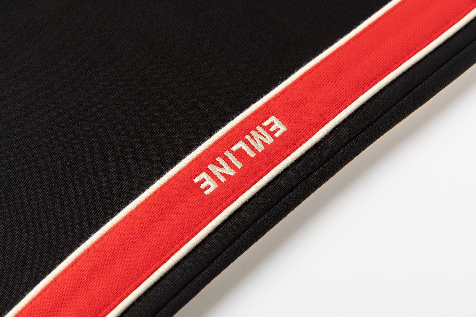 - Embroidery at left leg in cream.