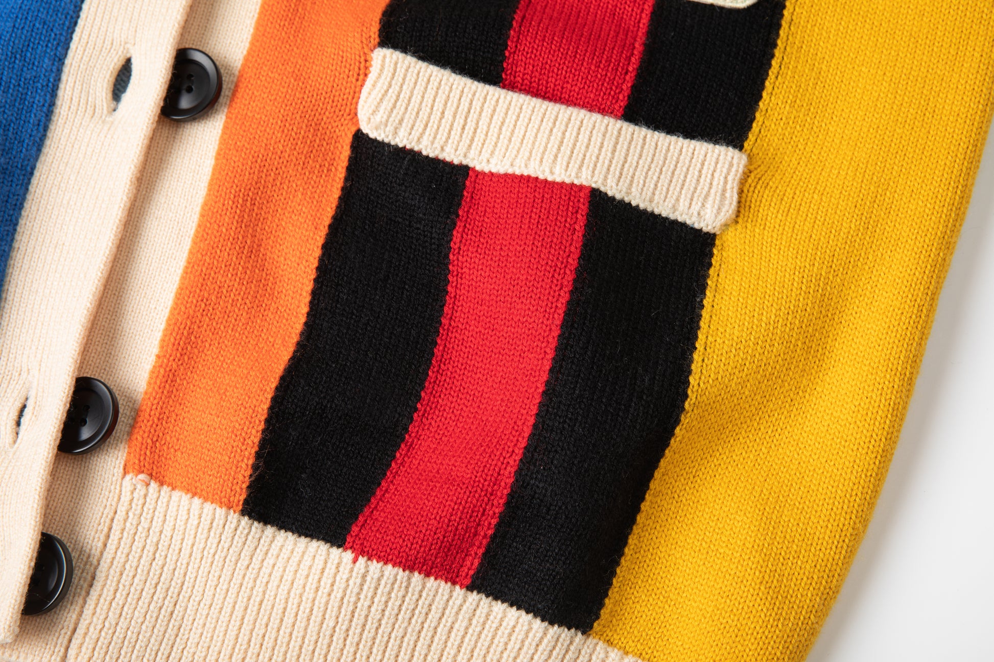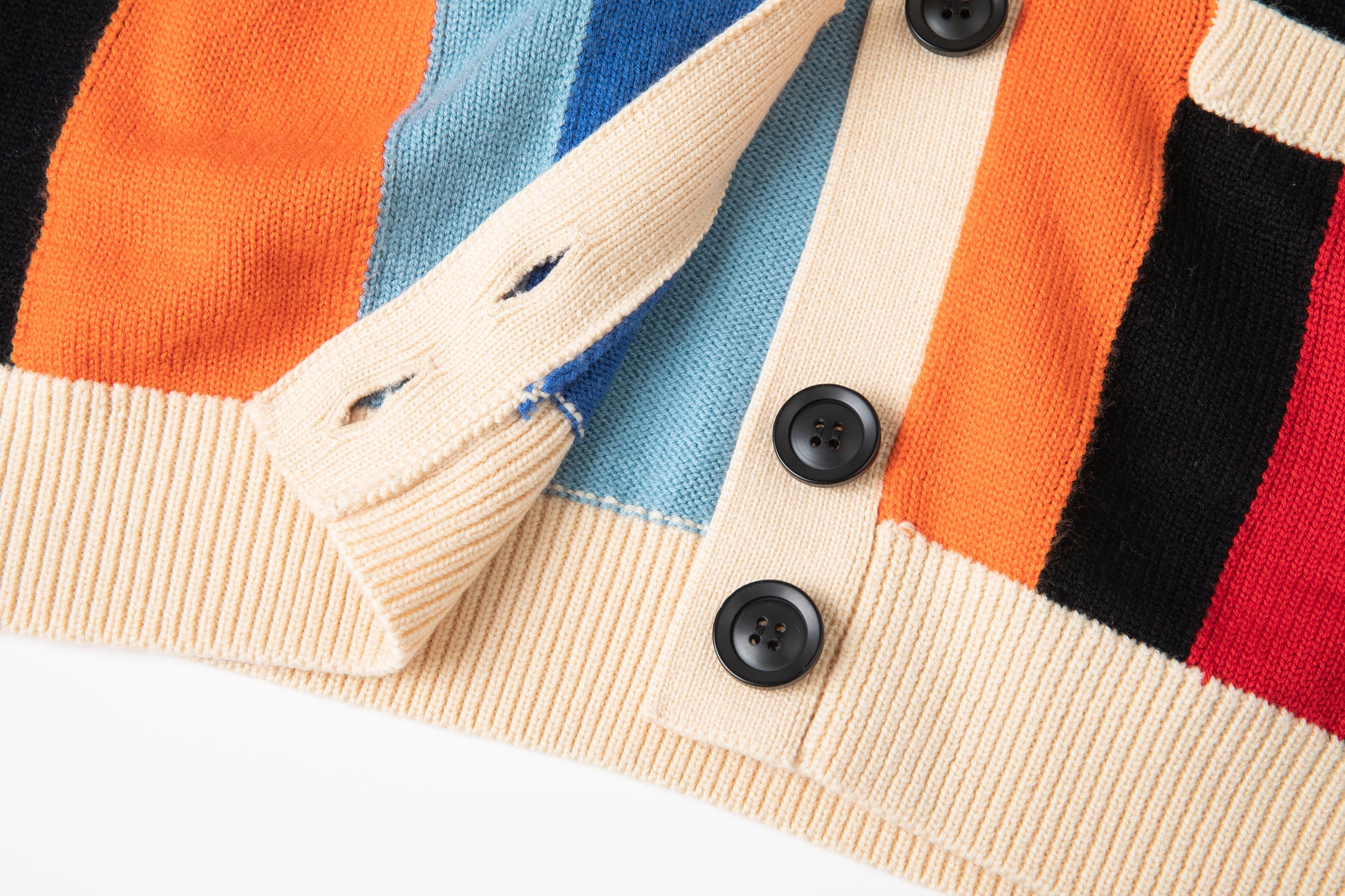 - Rib-knit, C-neck cardigan in multi.