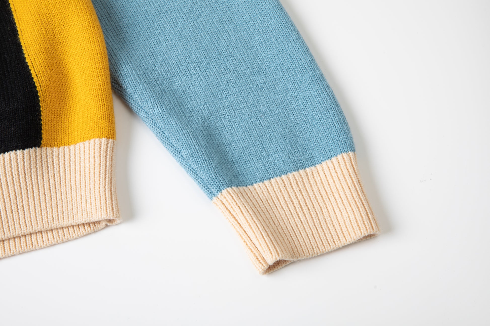 - Hem and cuffs in cream.