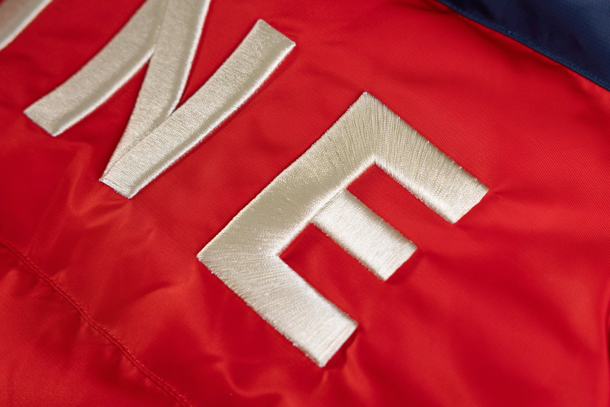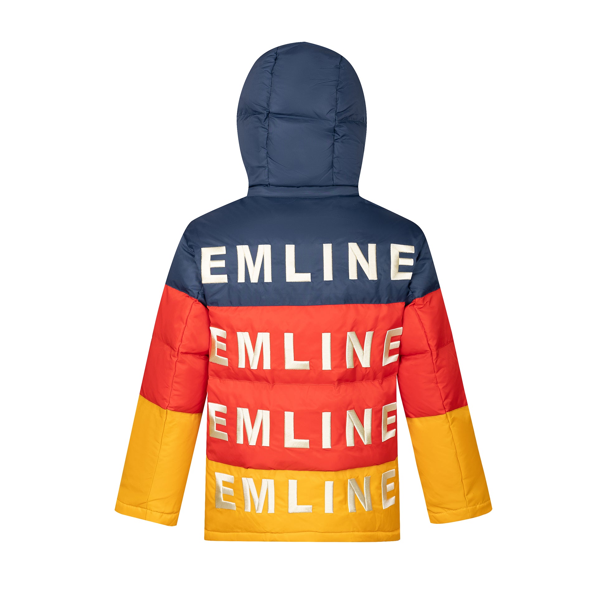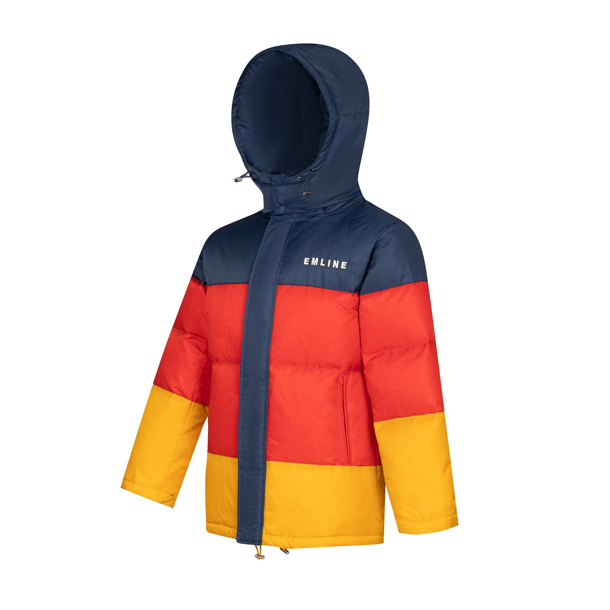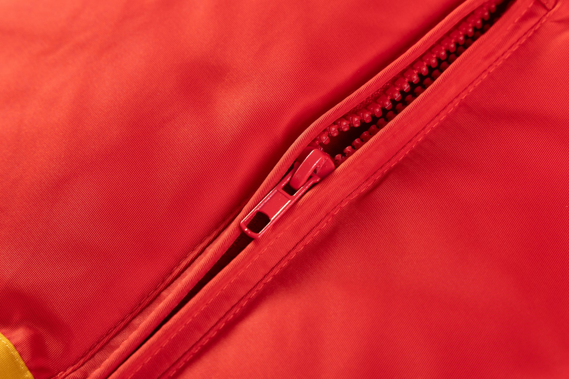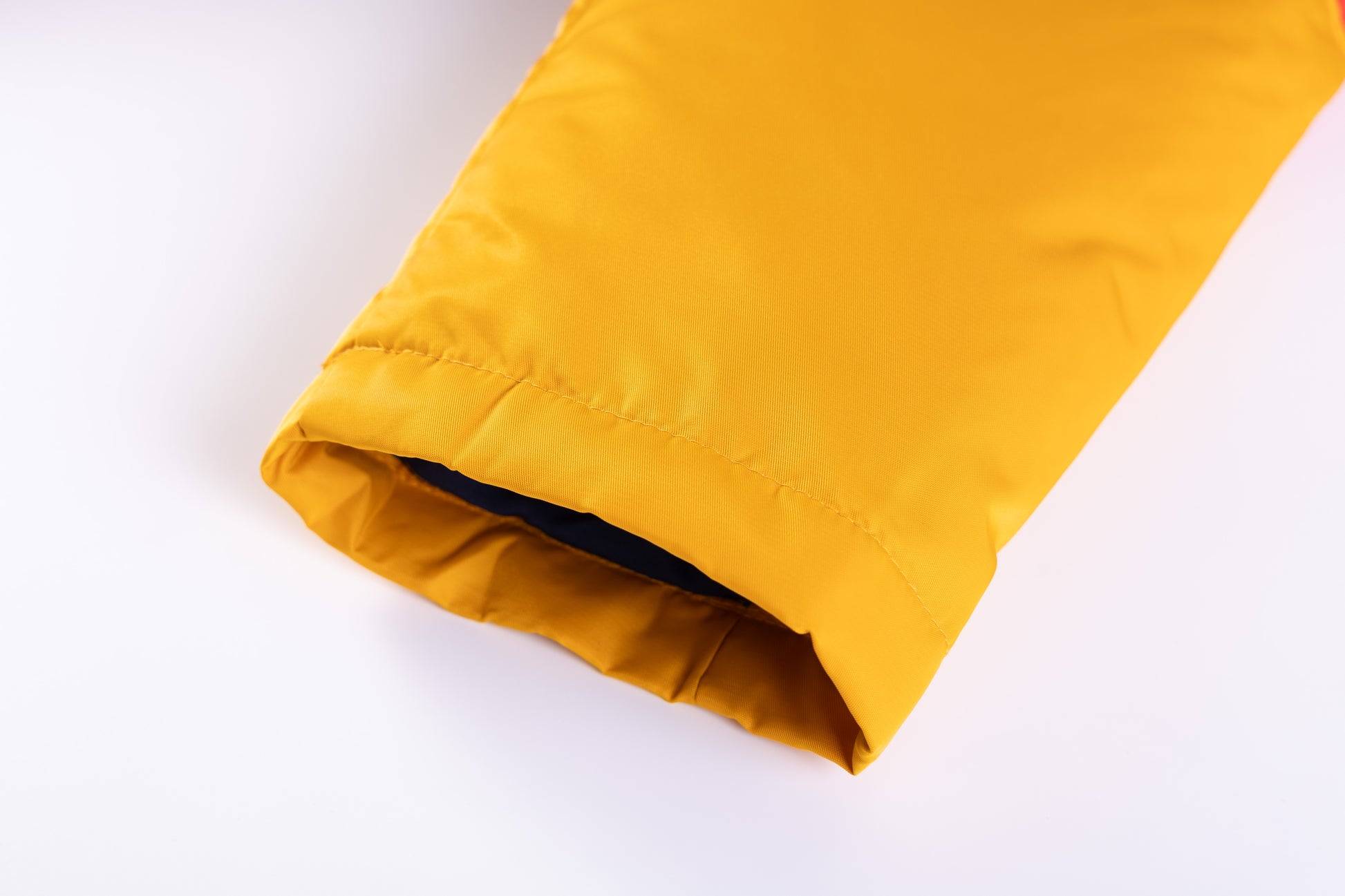 - Polyester outer shell in navy, red and yellow.