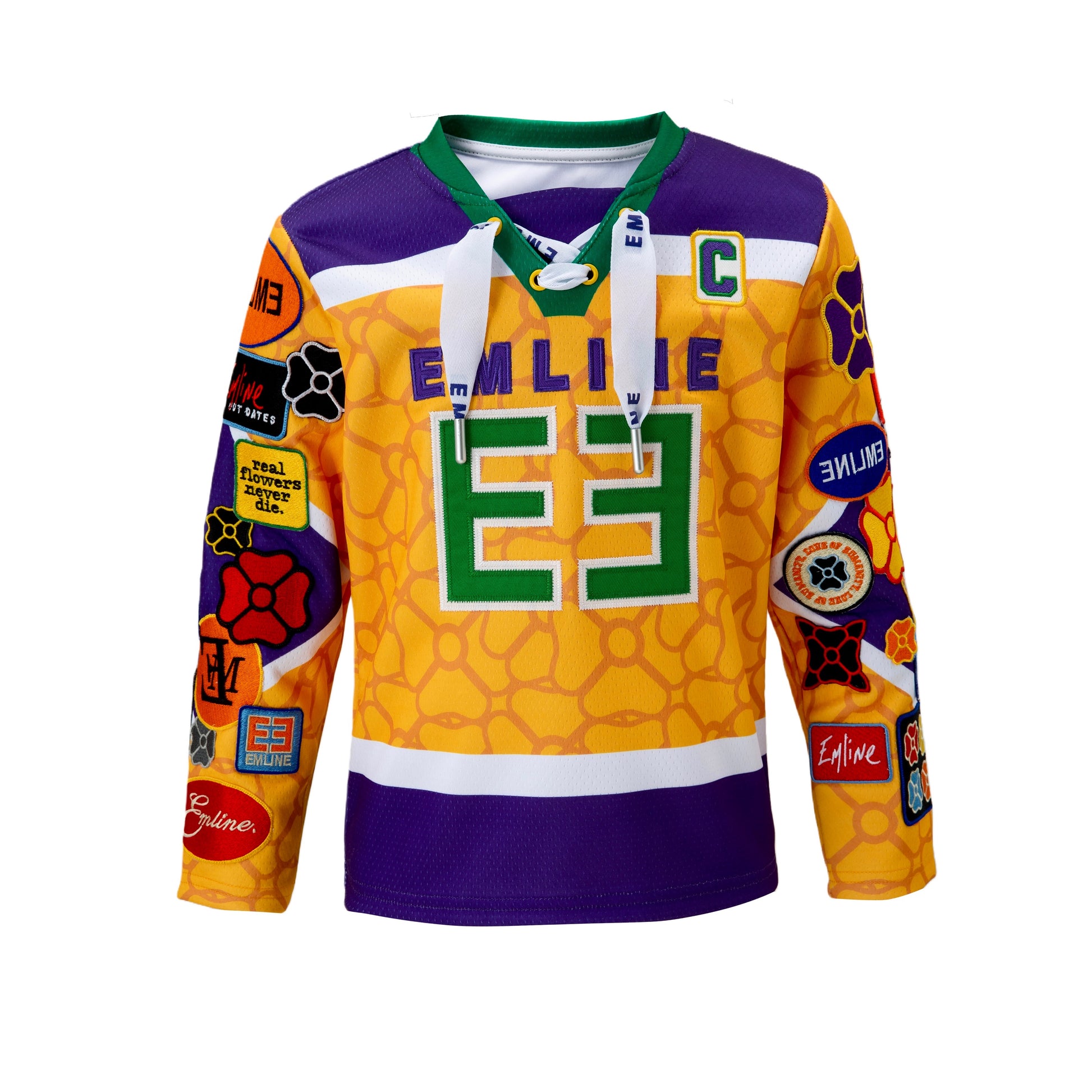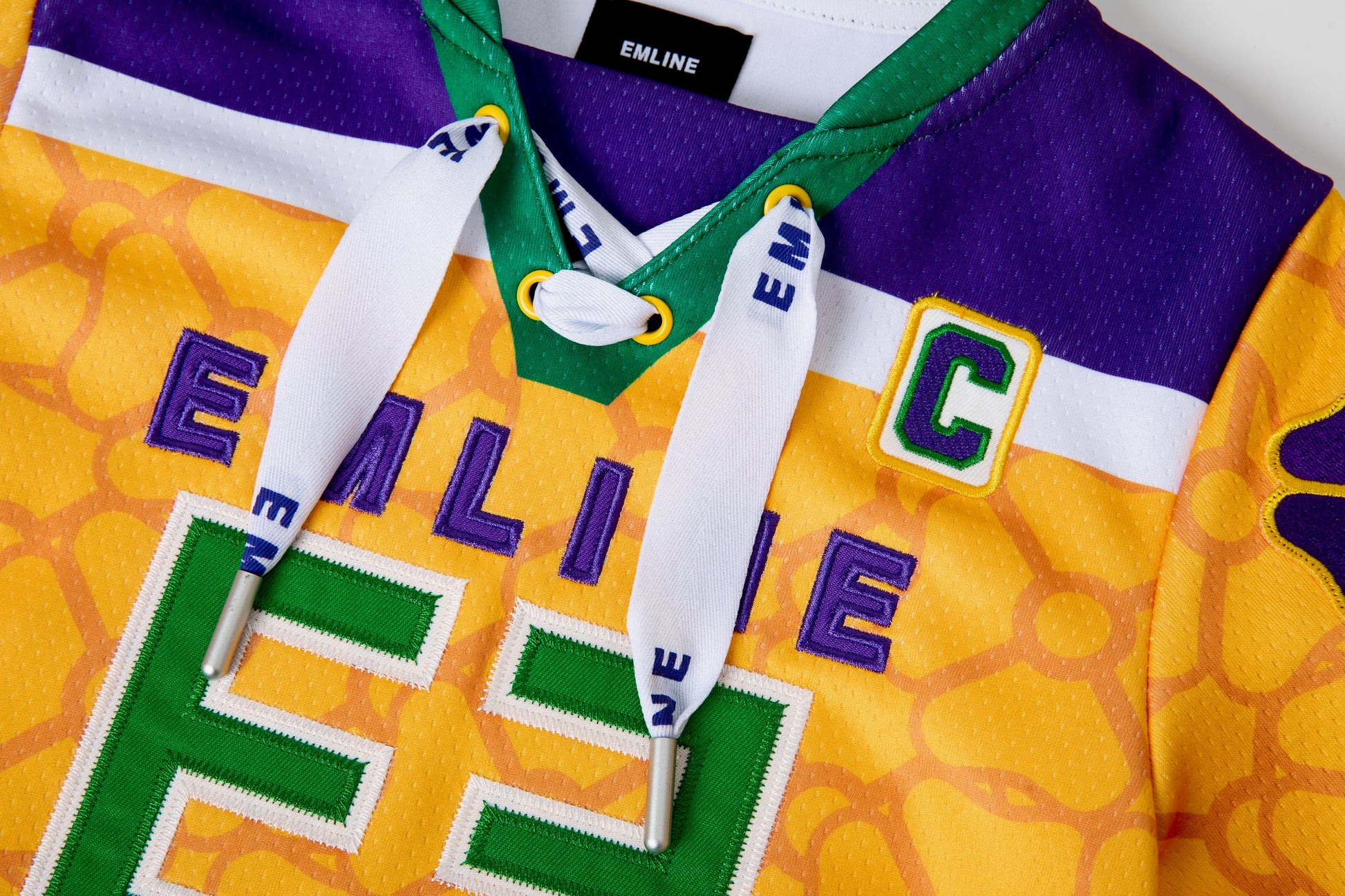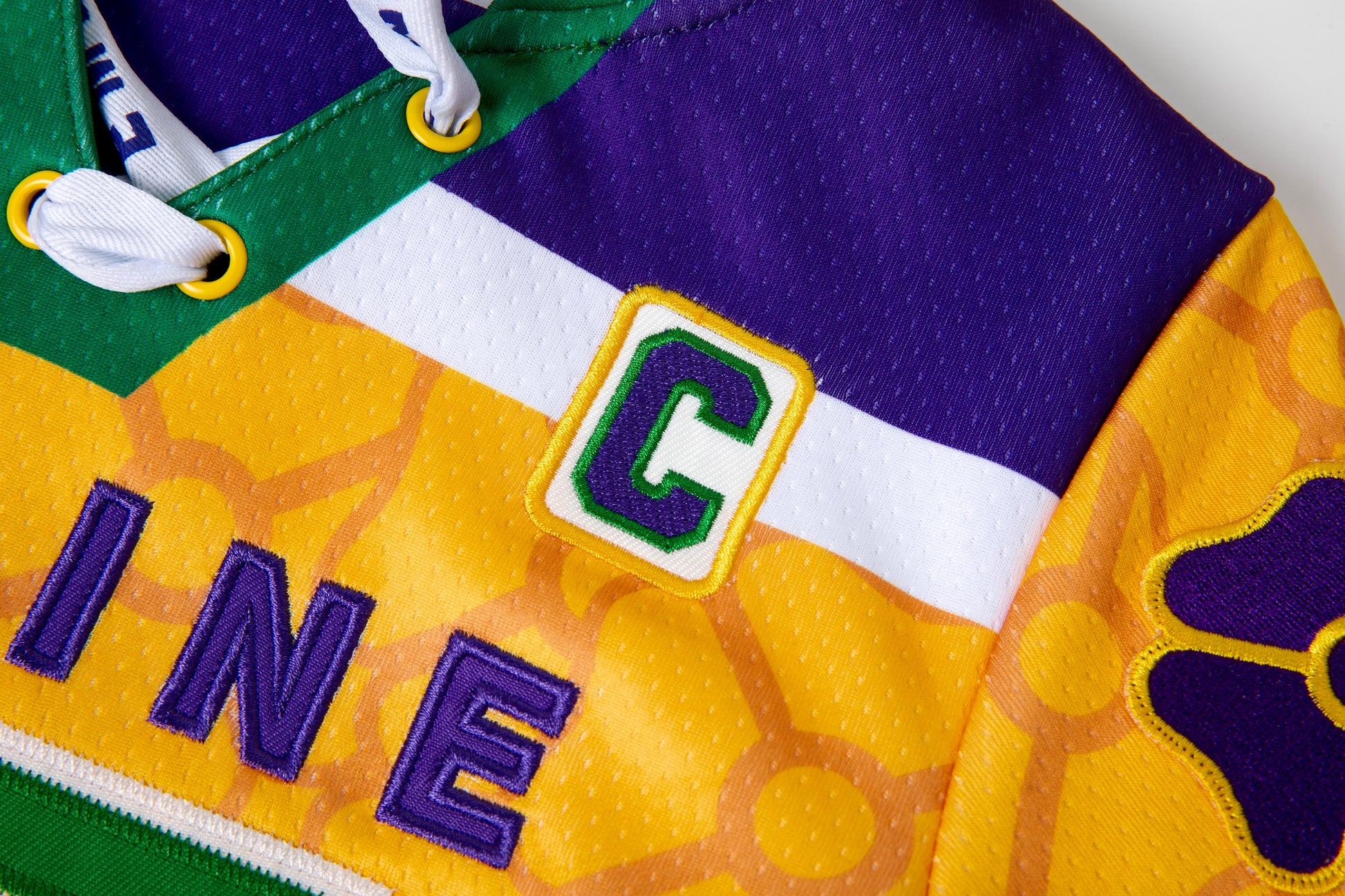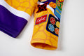 - Heavy pro mesh in yellow and purple.