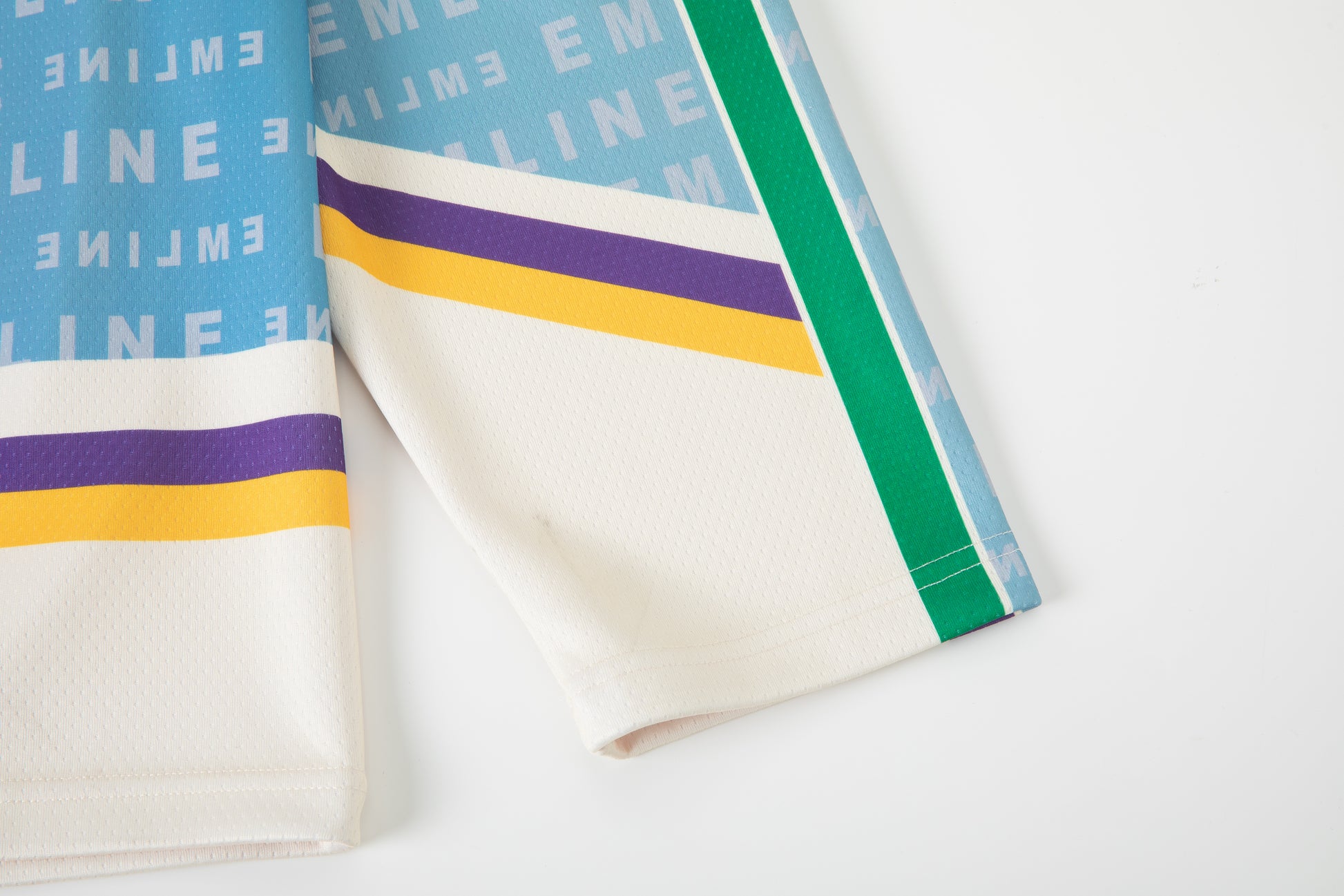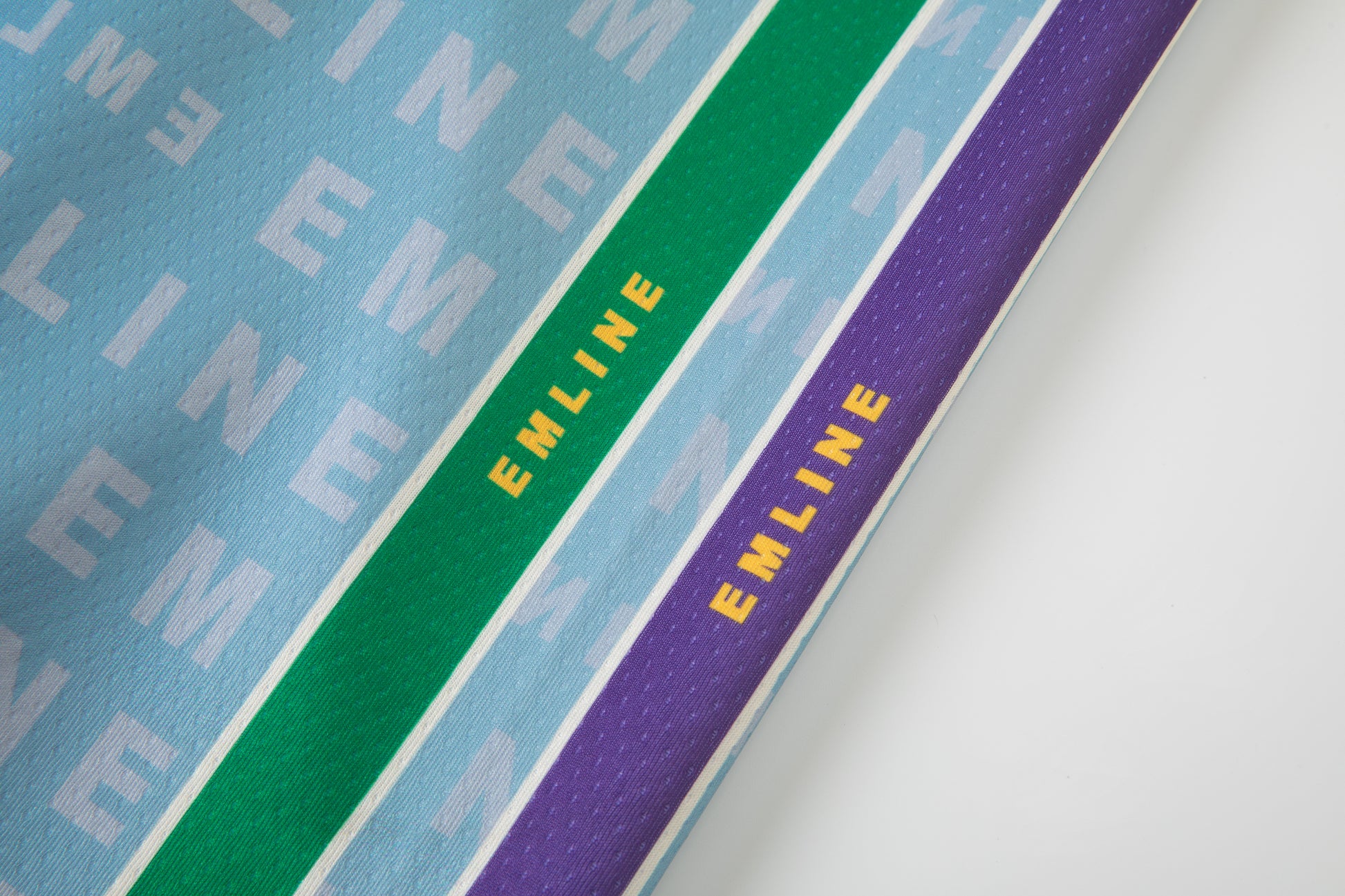 - Mesh in denim, purple, green, and yellow.