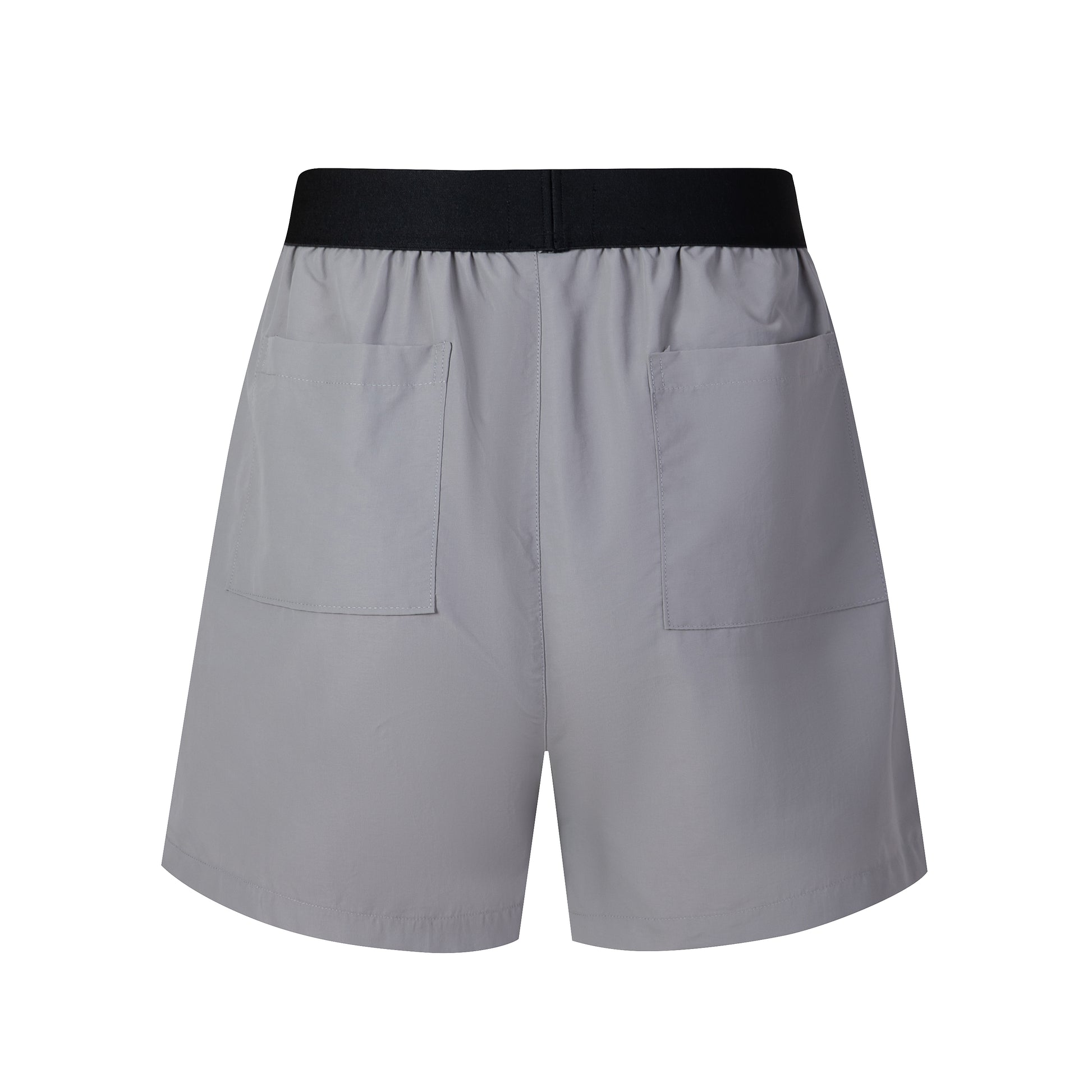 - Elastic waistband in black and gray.