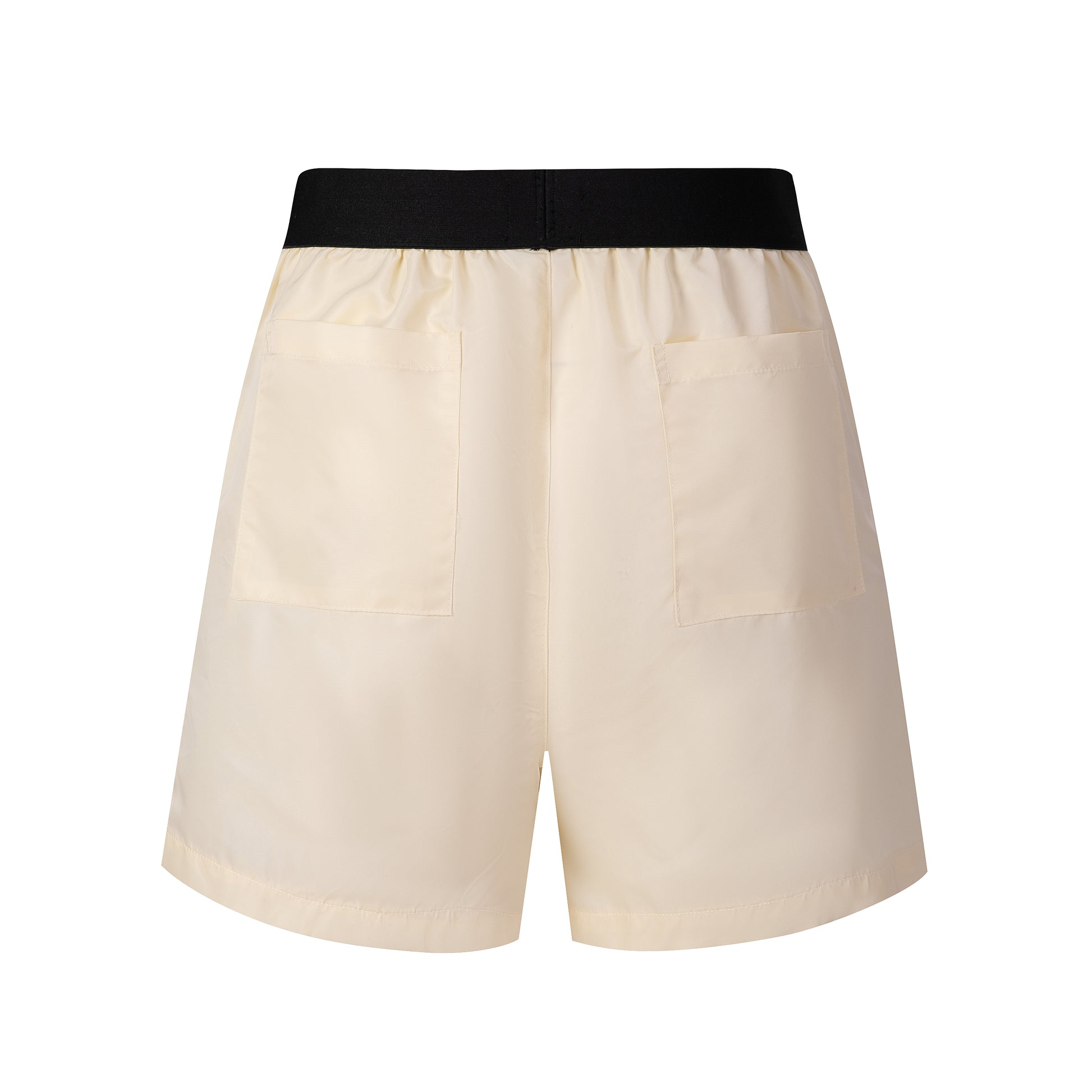 - Elastic waistband in black and cream.