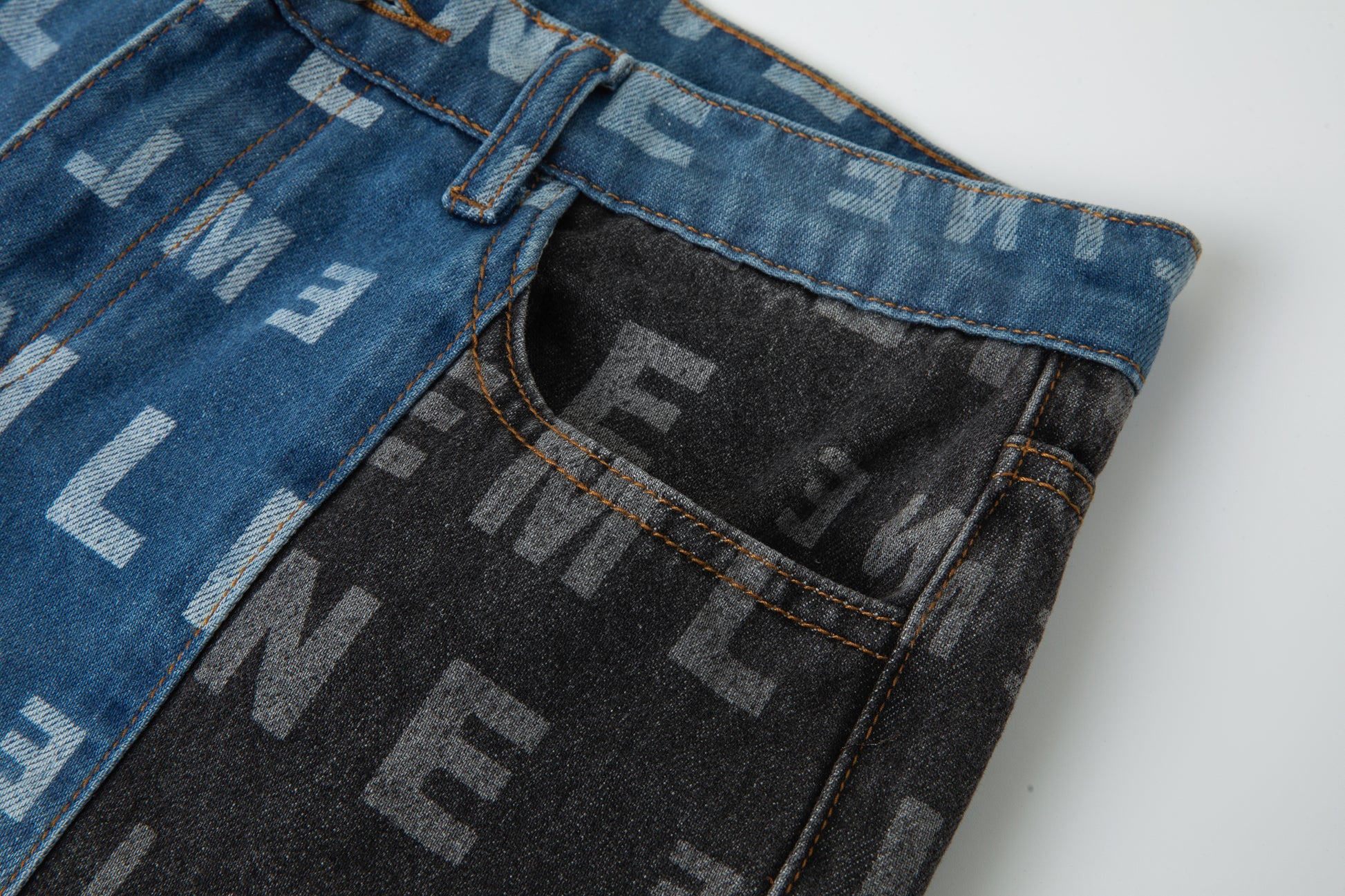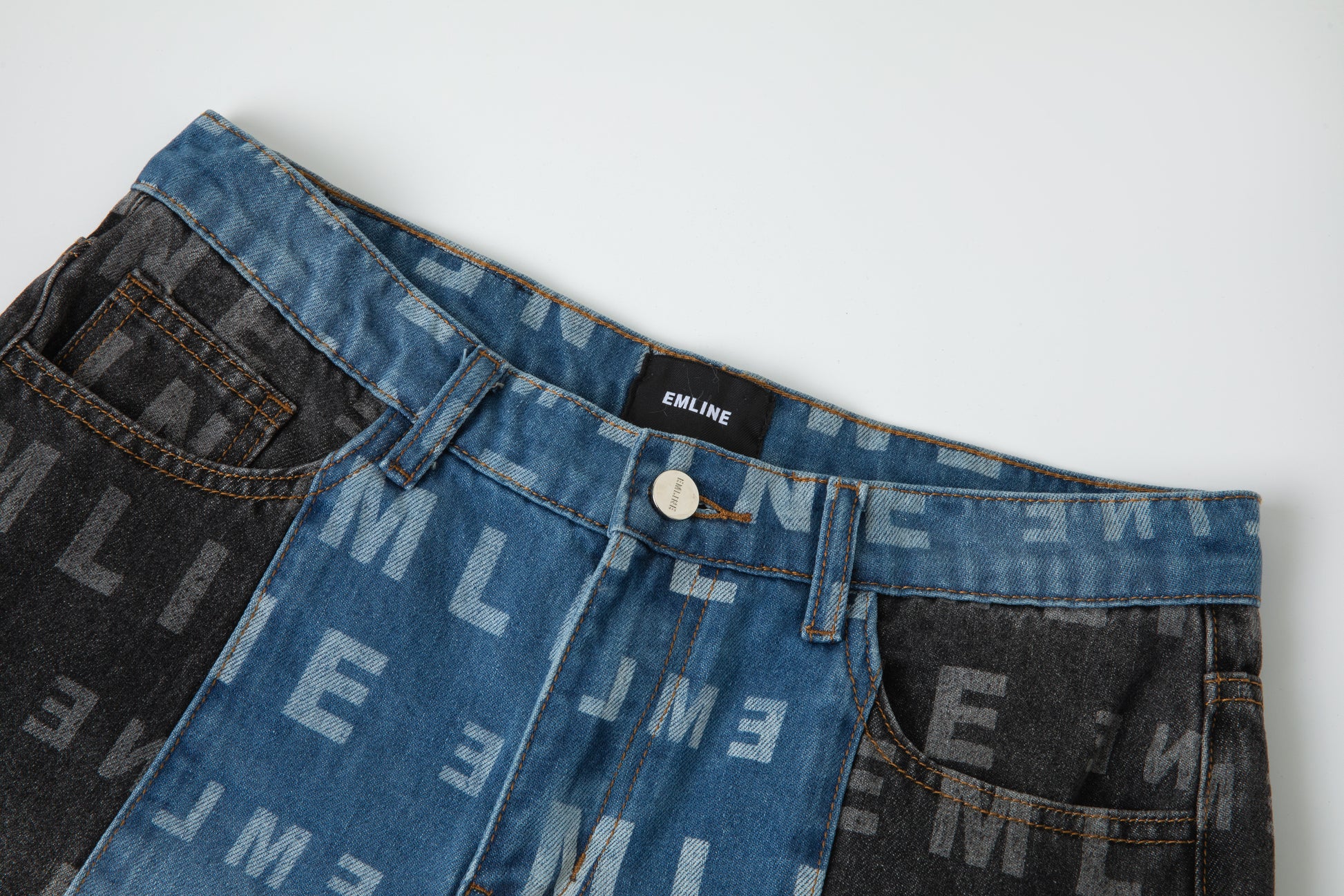 - Blue/Black Denim shorts.